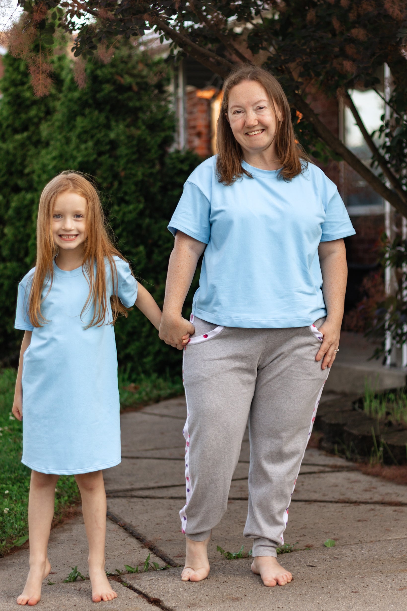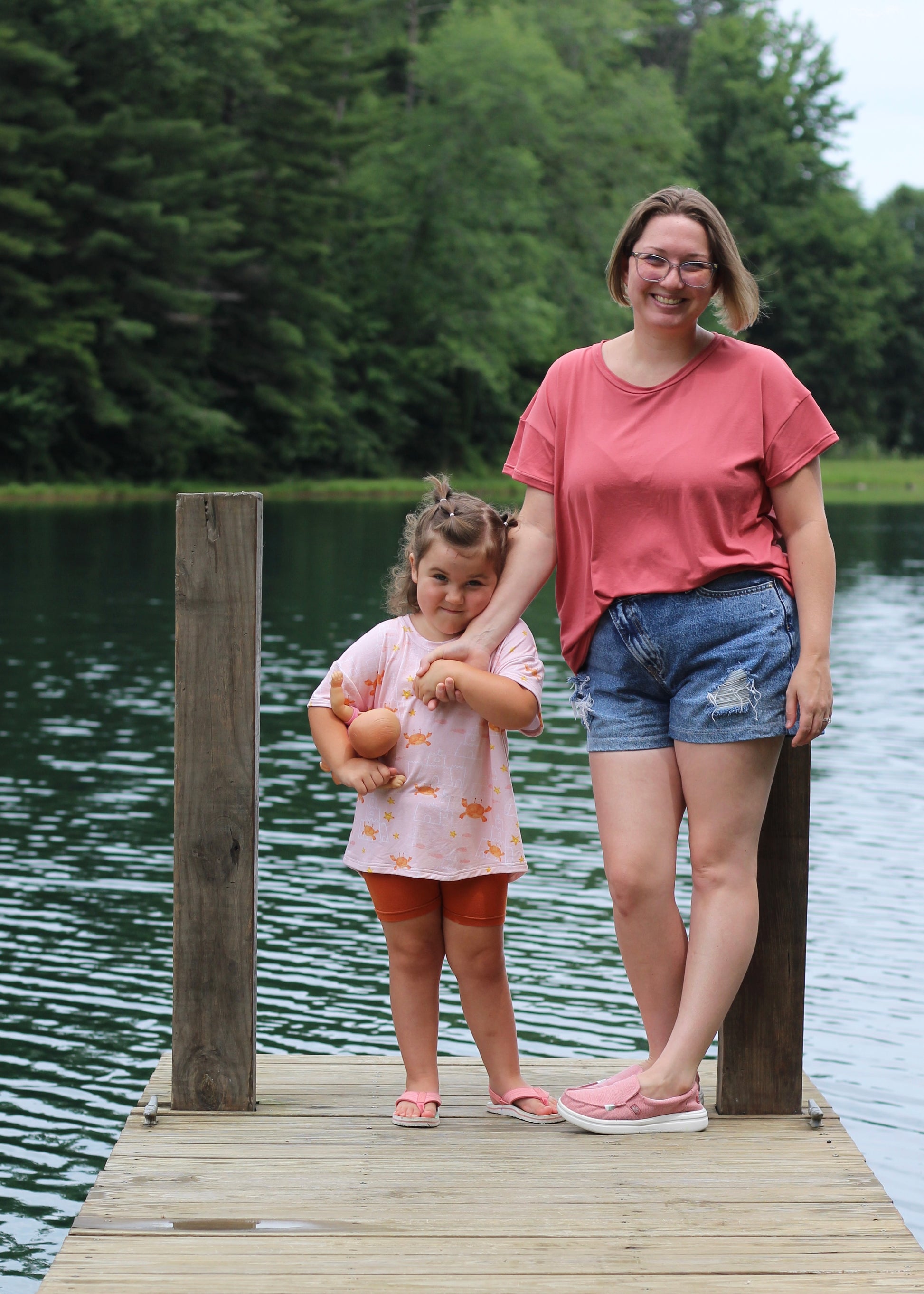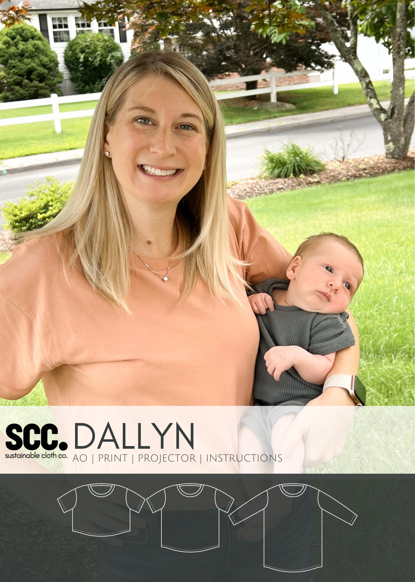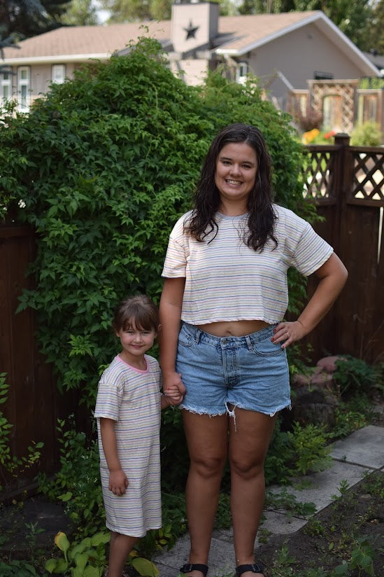 The SCC Dallyn PDF sewing pattern has been tested in adult xs-5X and baby-youth newborn through XL. The Adult Dallyn includes both a straight and boxy fit drop shoulder body in 3 lengths- crop, top and knee length. Dallyn features a slight curved hem and 3 sleeve lengths. Sleeve lengths include cap, basic short and long sleeve.