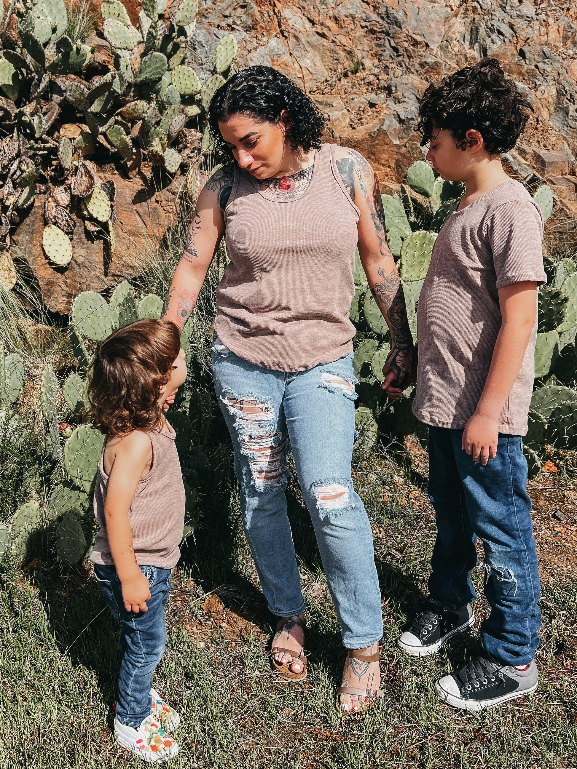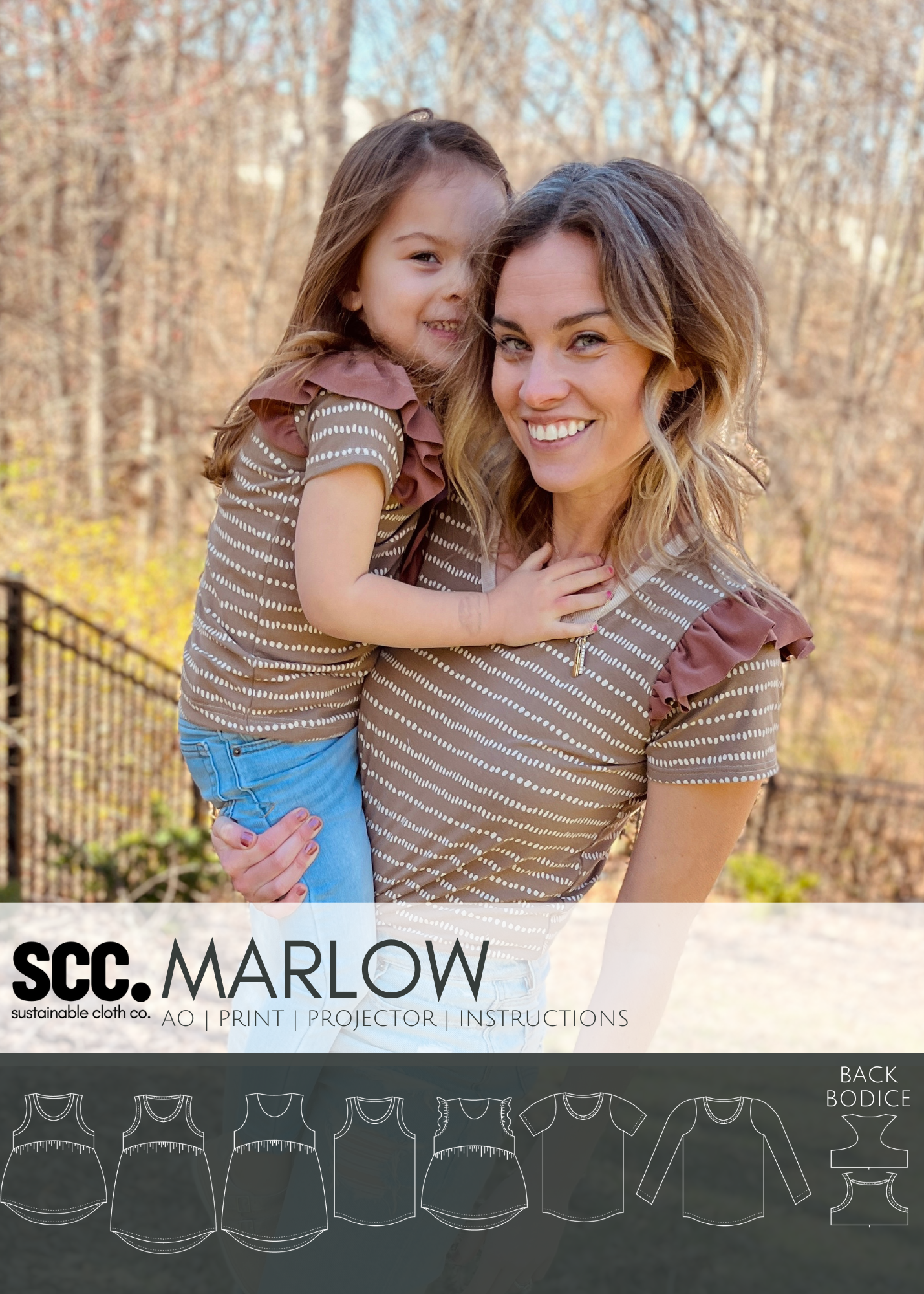 Marlow is a versatile knit pattern that includes a straight fit slight curved hem tank, racer back tank, sleeved top or a peplum top/knee length dress bodice. The peplum top/knee length dress bodice can be lined or unlined using the bands/binding. The straight fit, curved hem top length also has band/binding options.