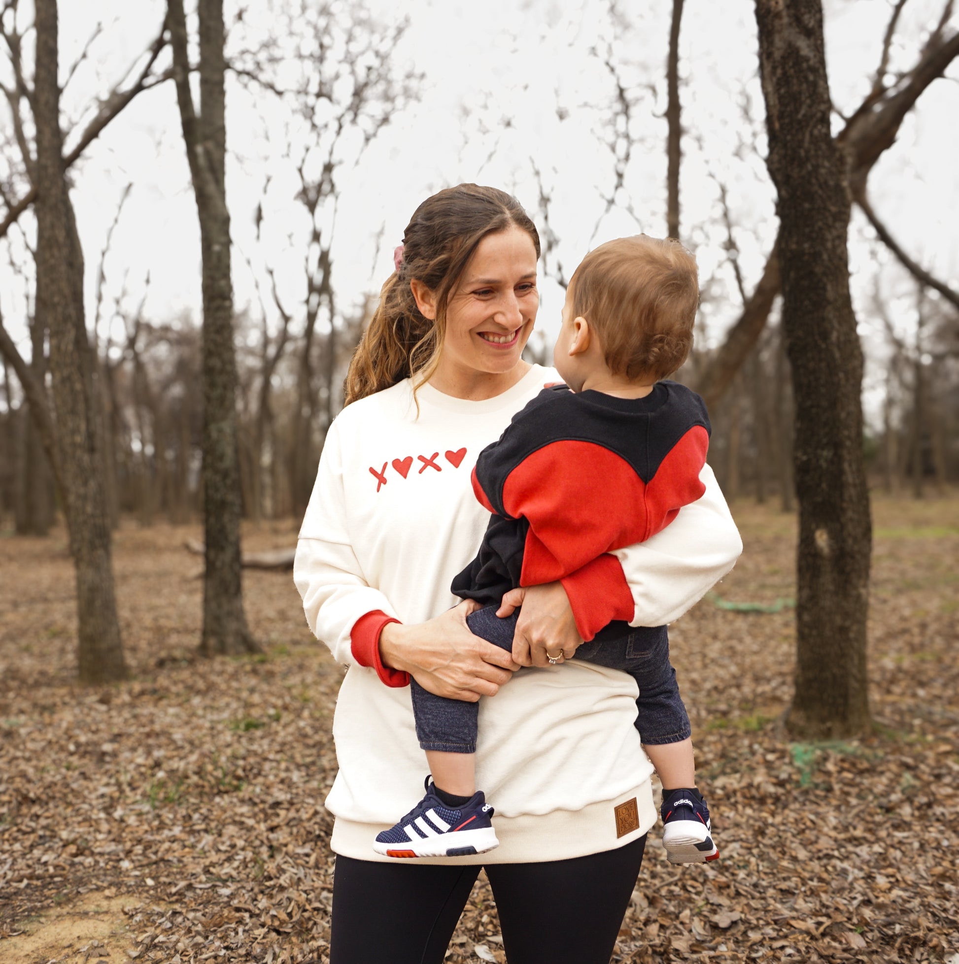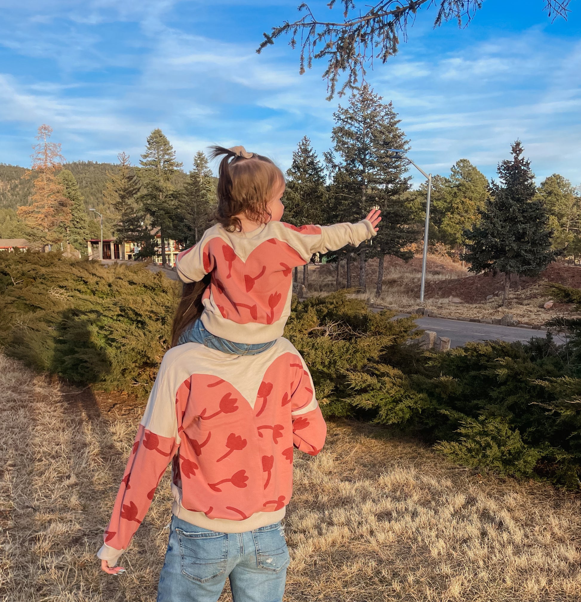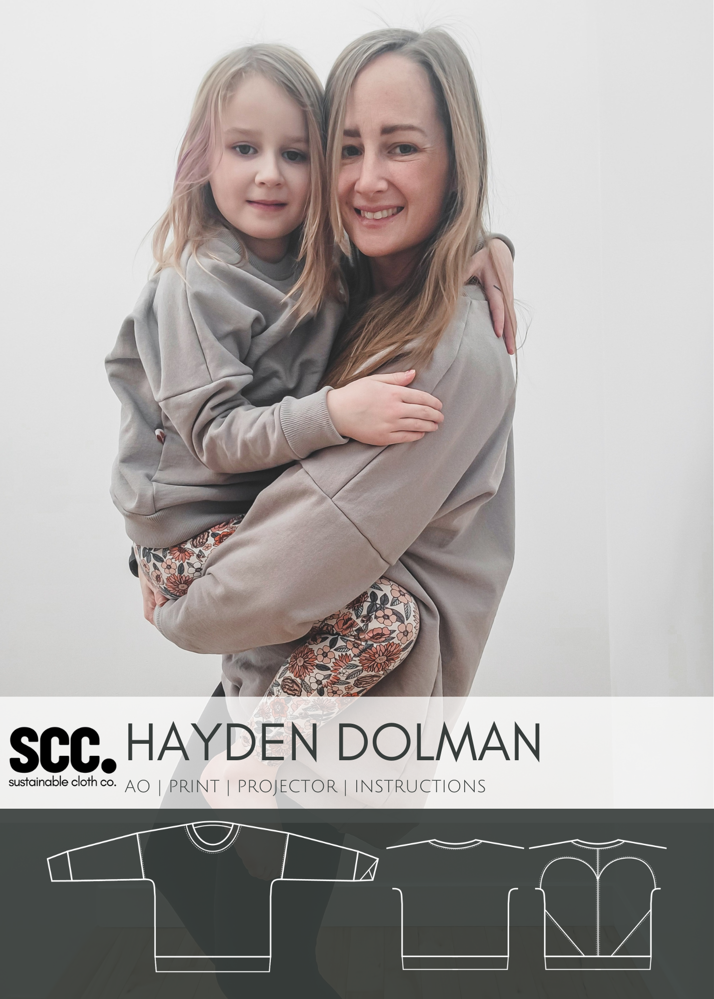 Oversized and cozy, the Hayden Dolman delivers. Hayden is intended to have an oversized fit amongst all sizes. If you prefer a less oversized fit- we recommend sizing down in width by 1. Hayden has a few options included: basic or heart back body, basic front body, basic or cross over cuffed long sleeves, neckband and waistband.