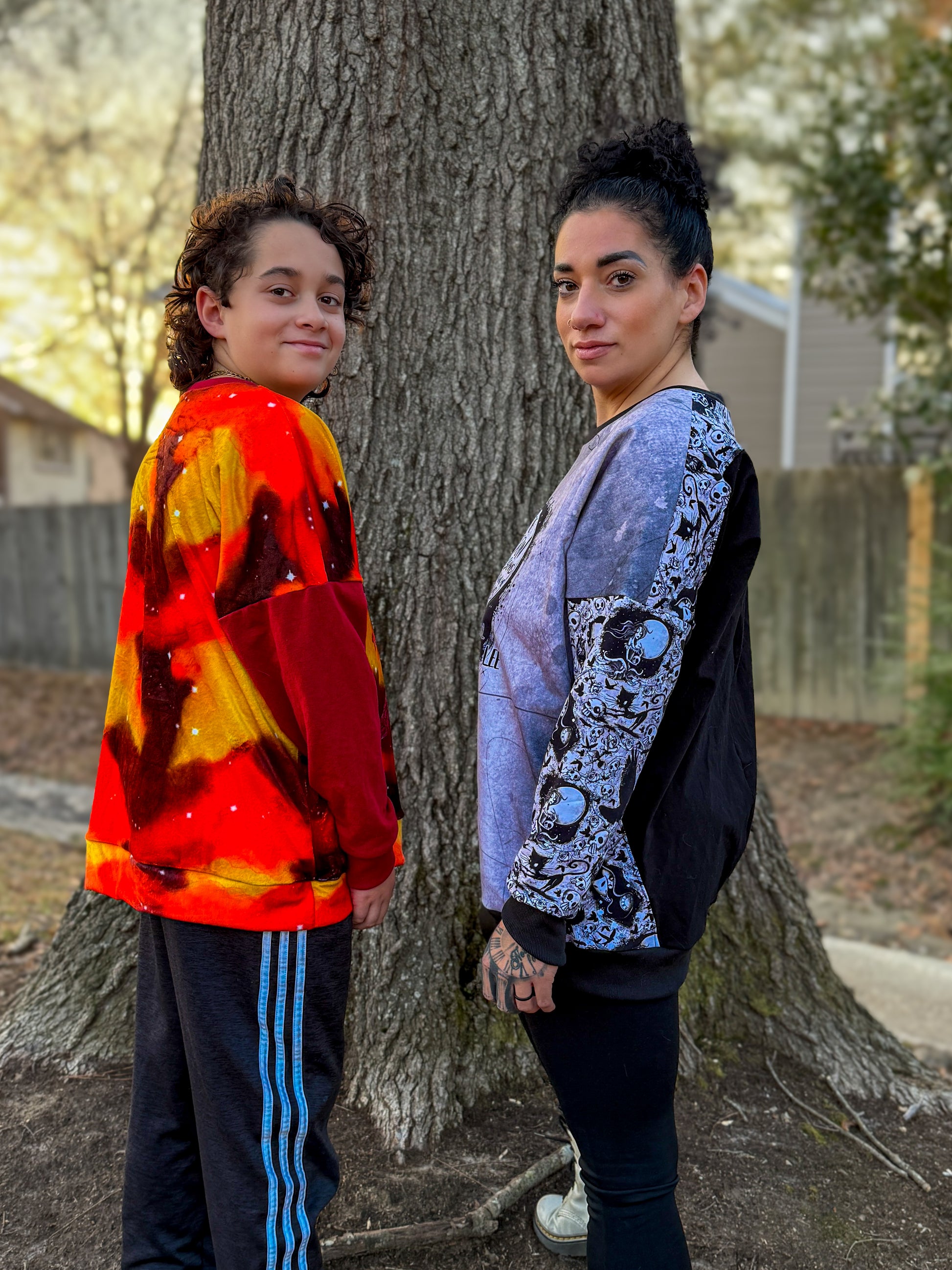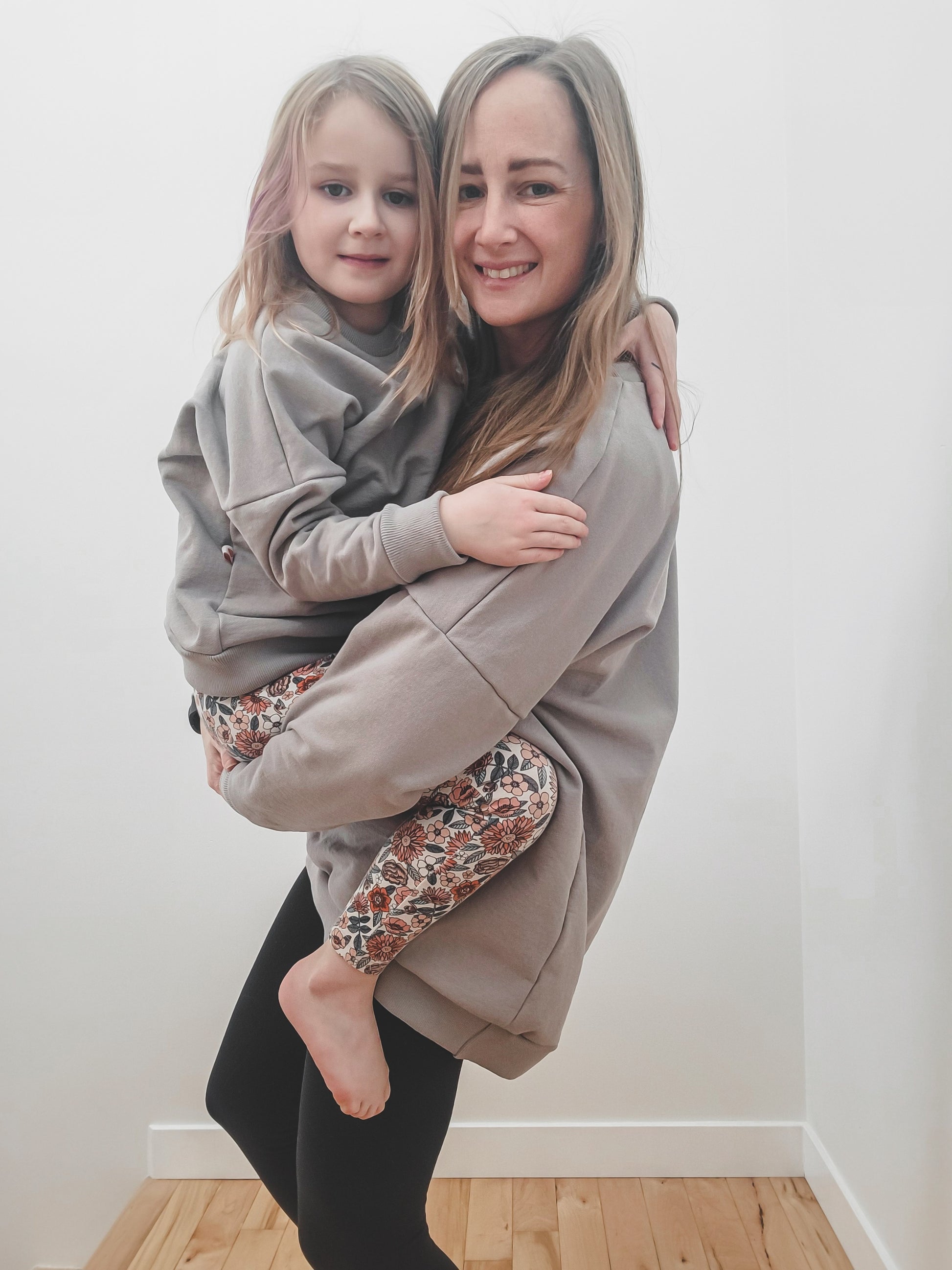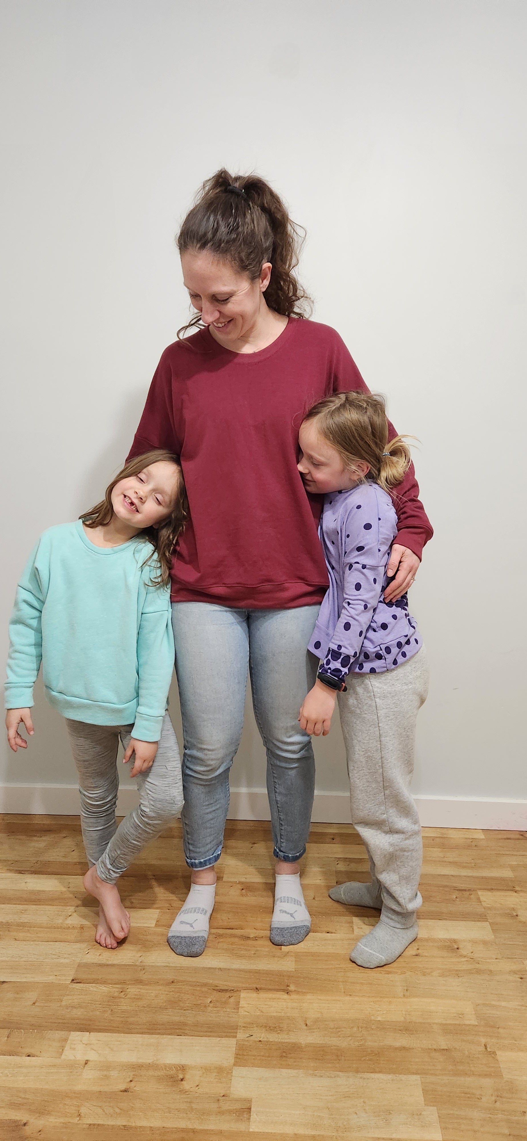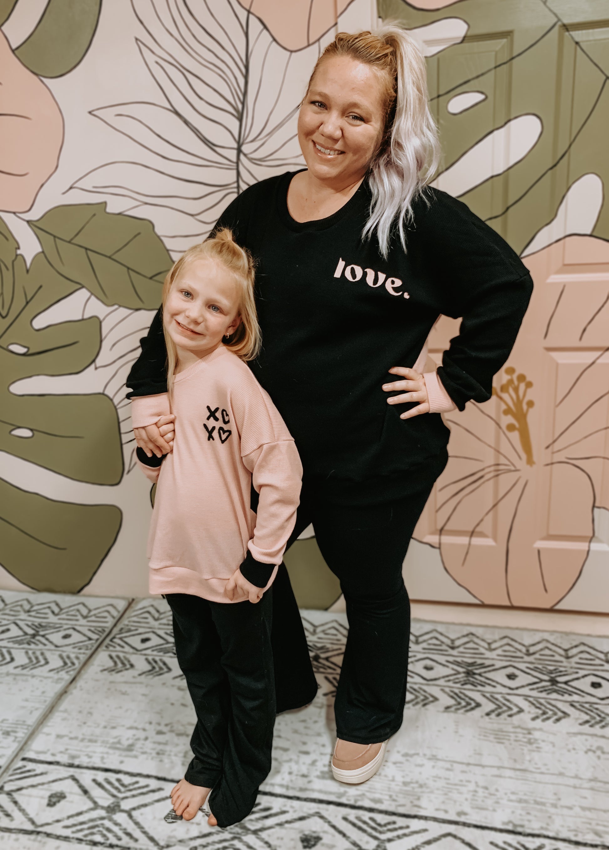 Oversized and cozy, the Hayden Dolman delivers. Hayden is intended to have an oversized fit amongst all sizes. If you prefer a less oversized fit- we recommend sizing down in width by 1. Hayden has a few options included: basic or heart back body, basic front body, basic or cross over cuffed long sleeves, neckband and waistband.