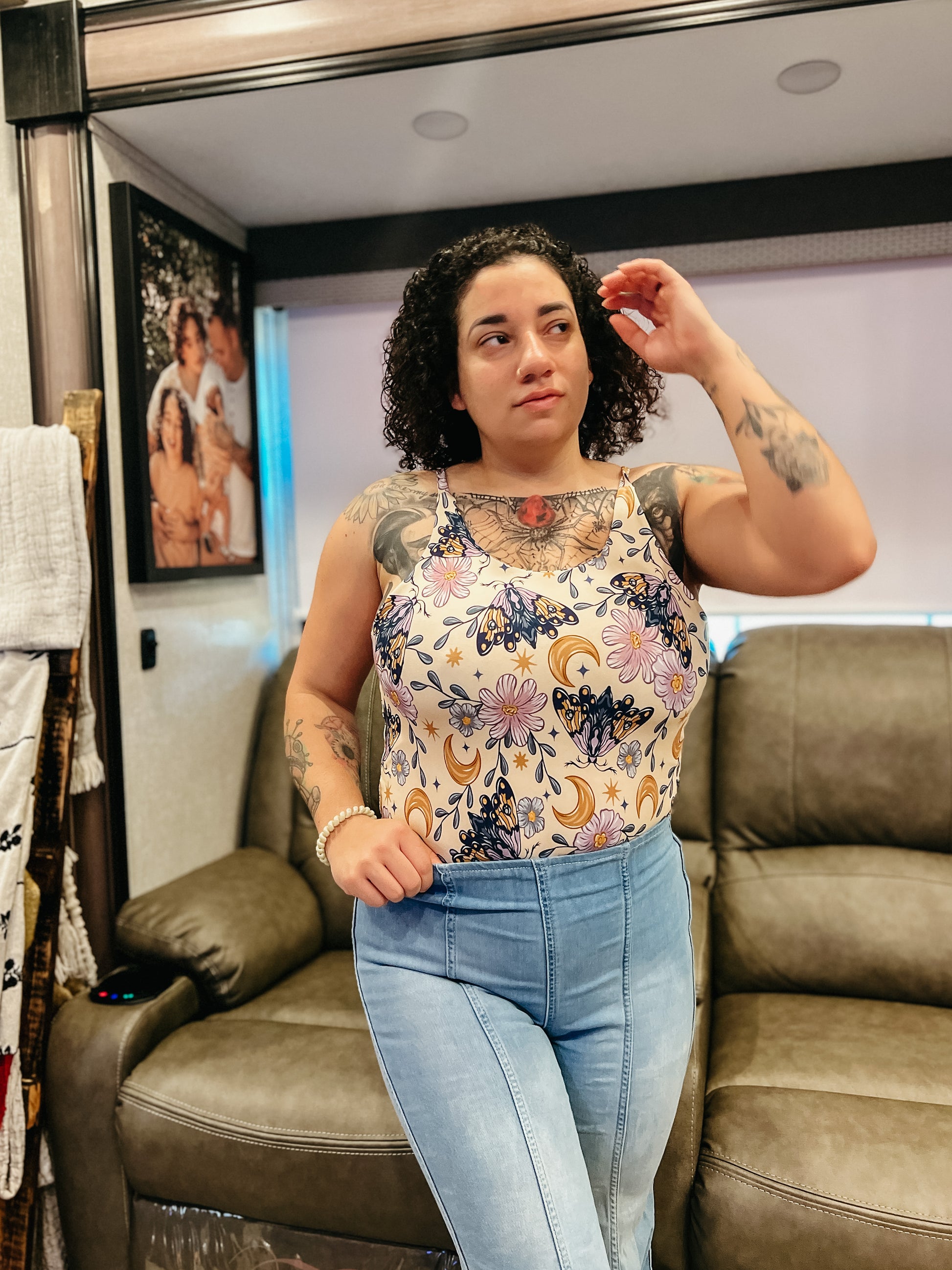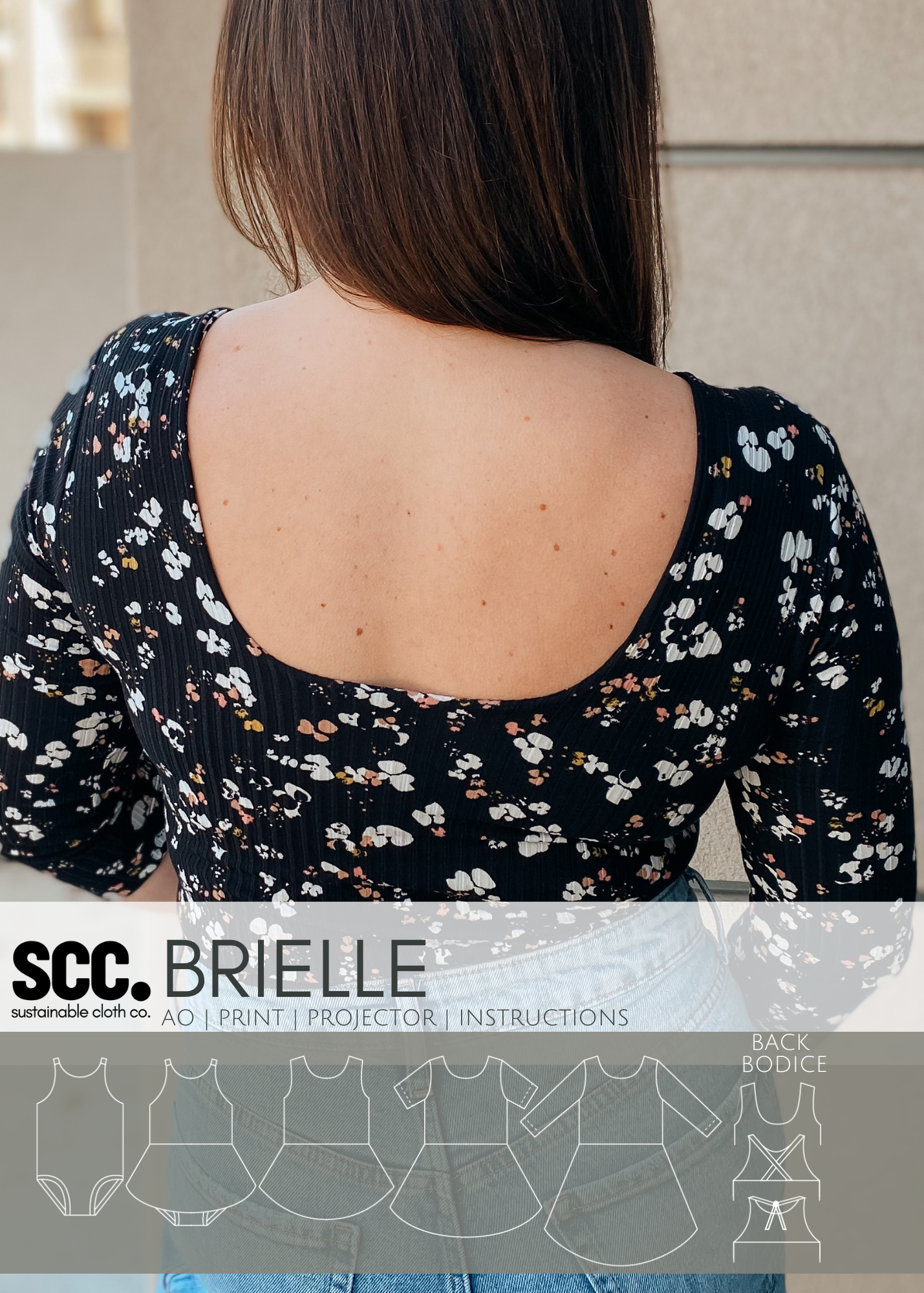 Brielle is a sewing pattern that includes many variations and options. From a bodysuit with 2 different rise options to a skirted bodice with 4 different lengths. Adult Brielle has been tested on models from extra small (0/2) through 5X. This pattern is drafted for knit fabrics with 4 way vertical and horizontal stretch.