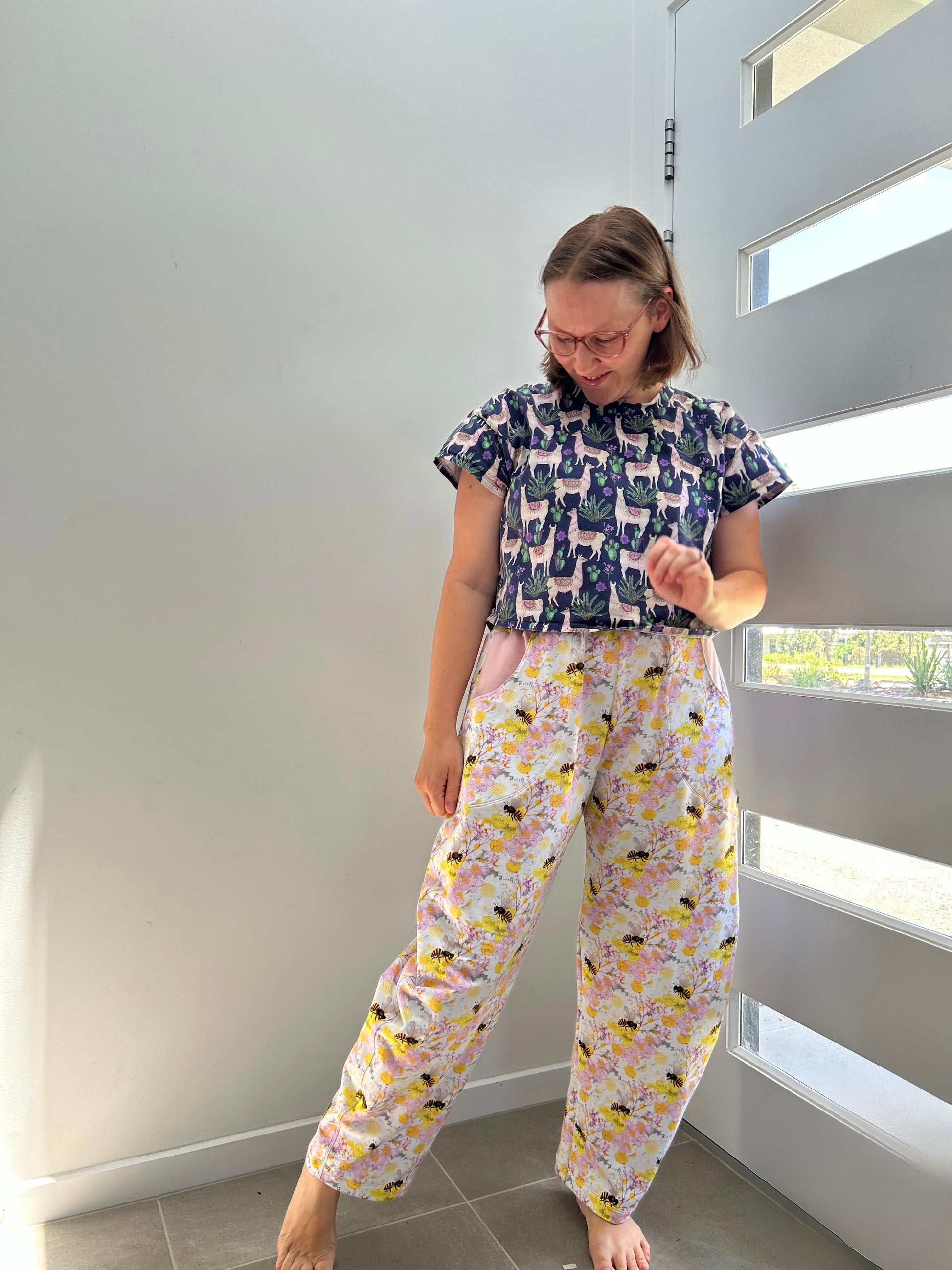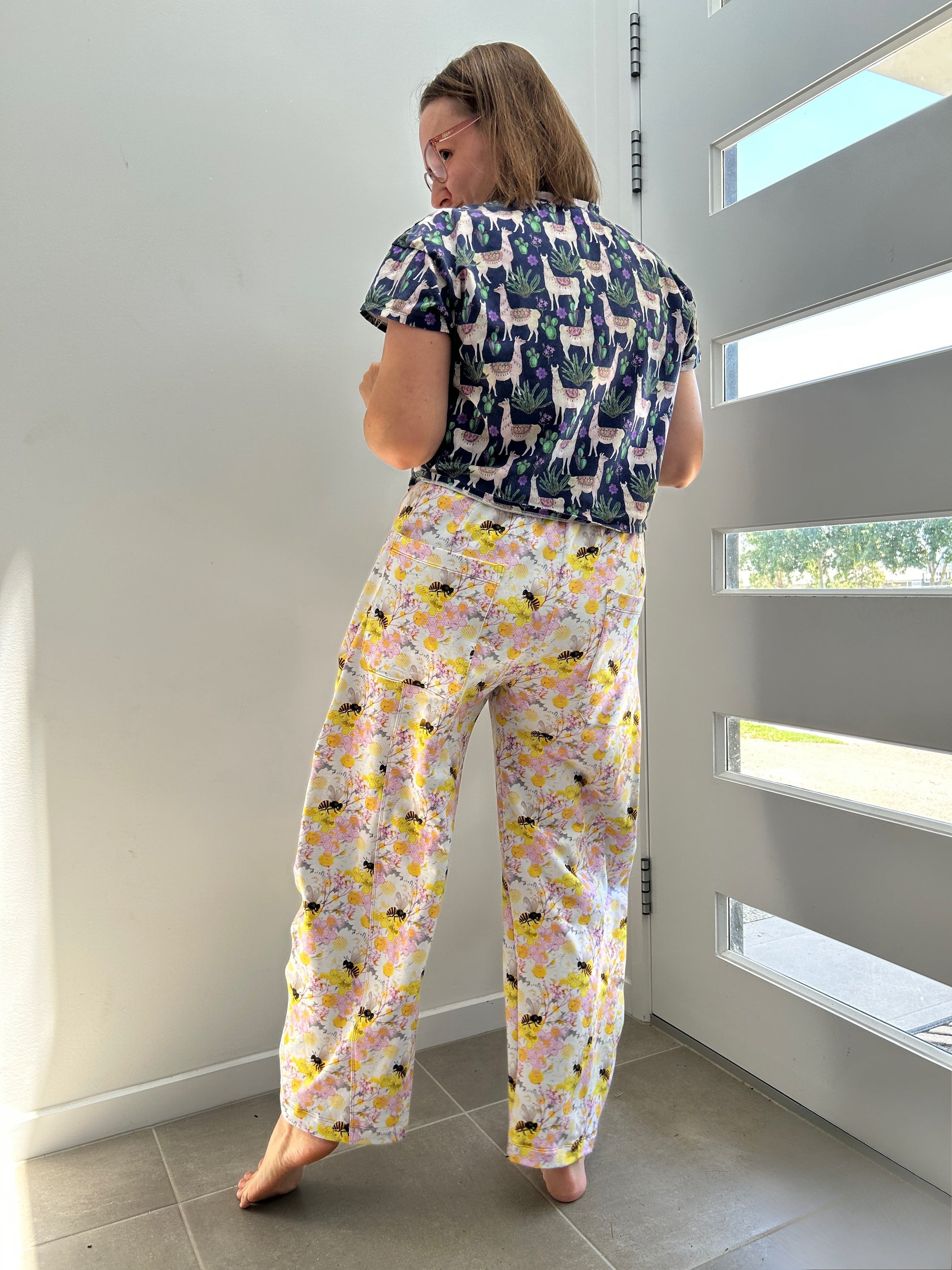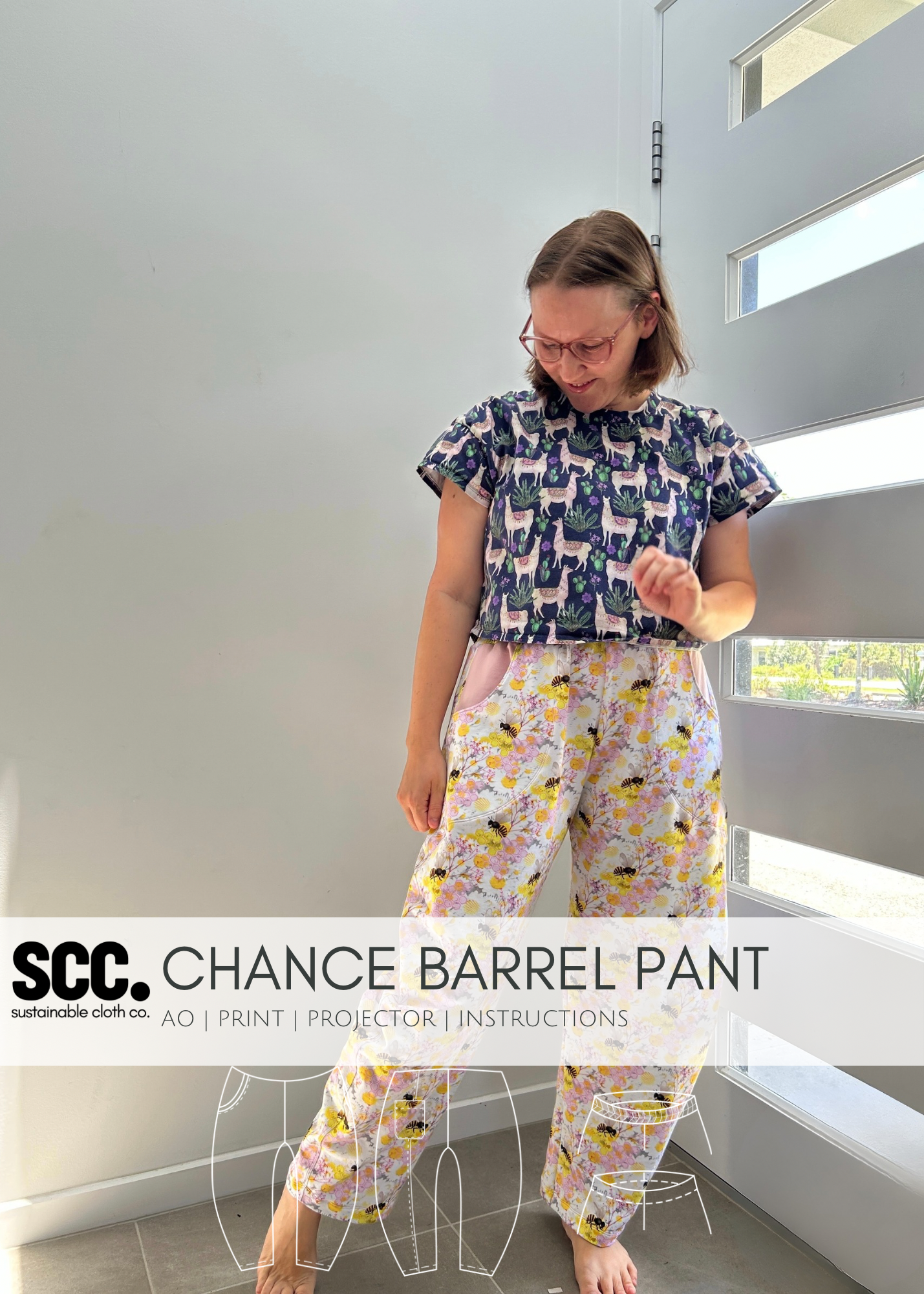 Trendy and modern - Chance barrel pants deliver. Chance is a knit bottoms pattern that includes encased elastic as well as fold down elastic waist finishes. There are 3 pocket styles included as well - front curved seam (encased elastic waistband only), inset pockets (all styles) and a traditional back pocket (all styles). Chance works well with both 4 or 2 way stretch knit fabrics and is drafted for newborn-youth xl sizes and adult XS through 5x.