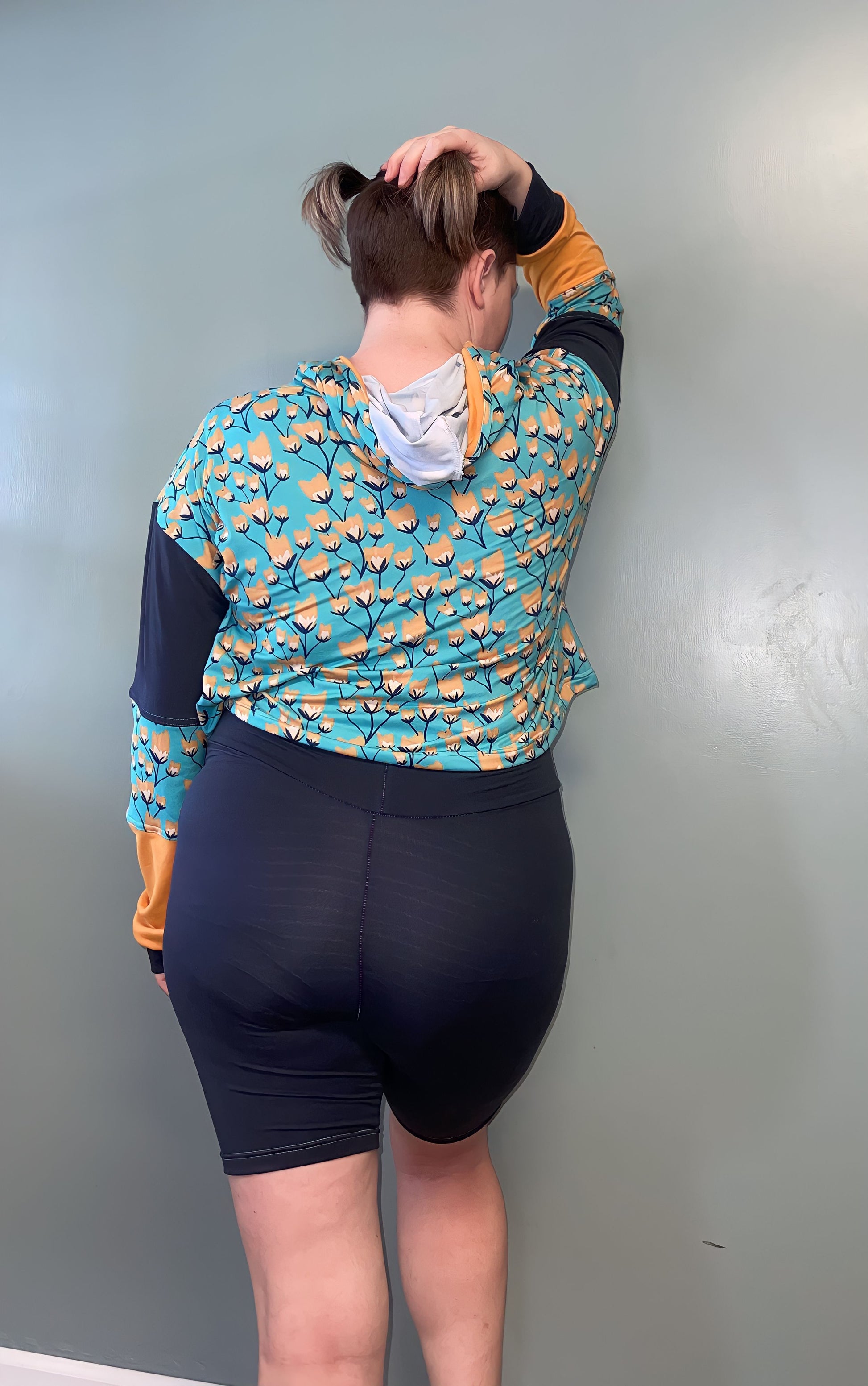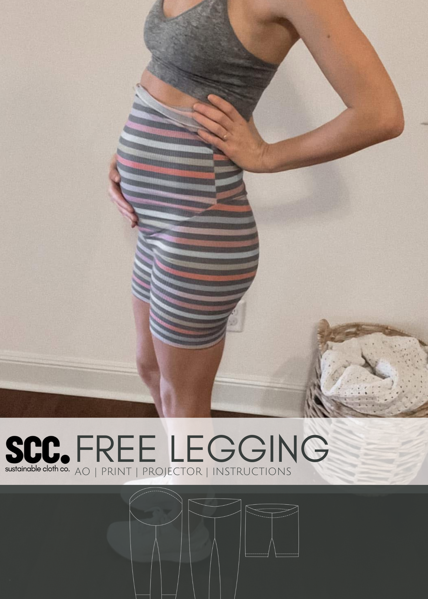 The free legging pattern has a non-ribbed fabric pant pattern piece (jersey, bamboo, cotton spandex, waffle, cotton lycra ETC.) and a ribbed fabric pant pattern piece (ribbed fabrics with very good stretch and recovery). Having these two options provides the best fit for when using those style fabrics. This pattern comes with two bike short lengths (4" or 6"), 7/8th pant and 30" inseam pant length. You can finish the waist with a basic or fold over fabric waistband or use 1.5" elastic for an elastic waistband. This pattern has been tested in sizes adult xs-5x. This pattern is drafted for knit fabric with 4 way vertical and horizontal stretch.