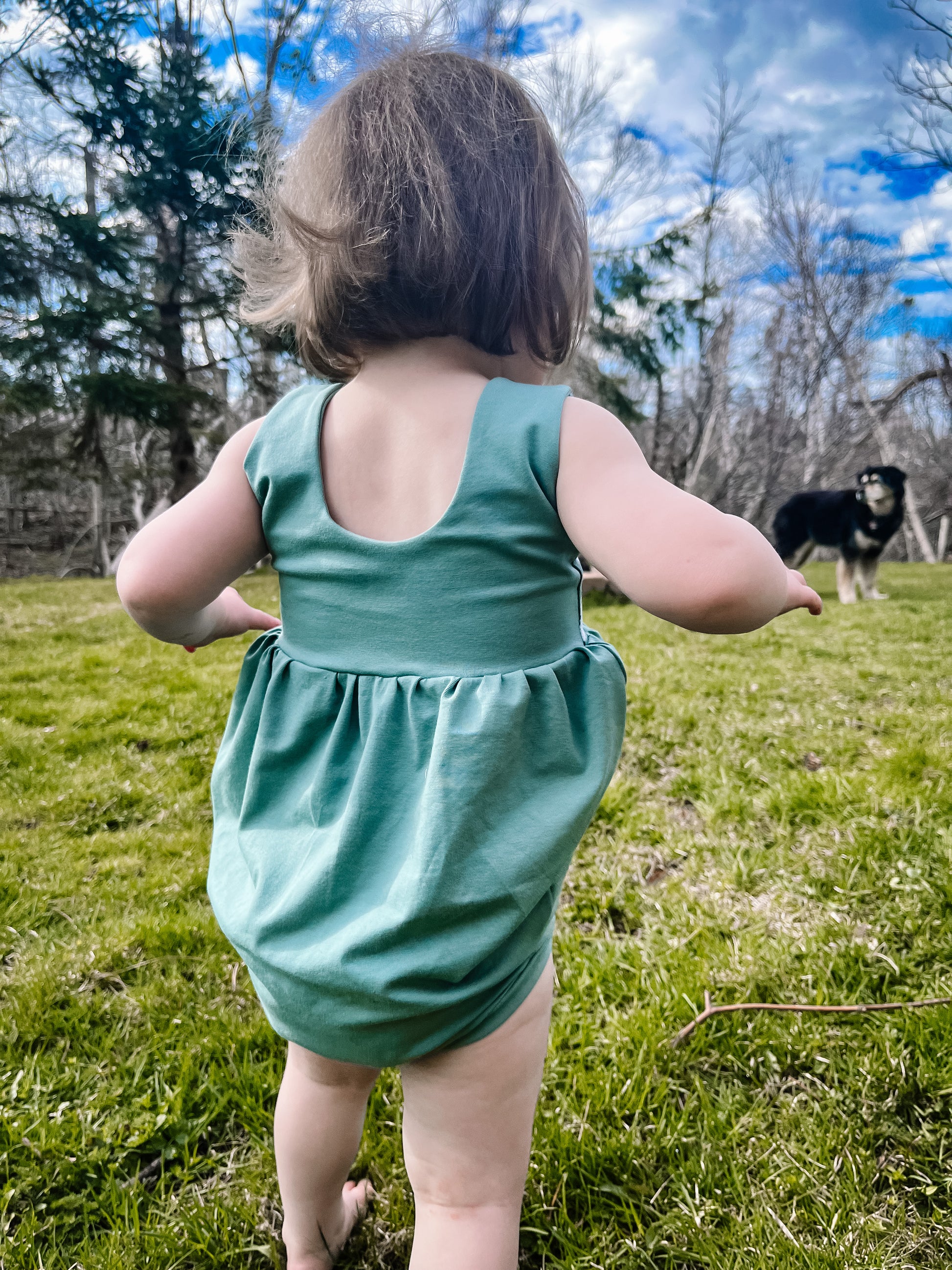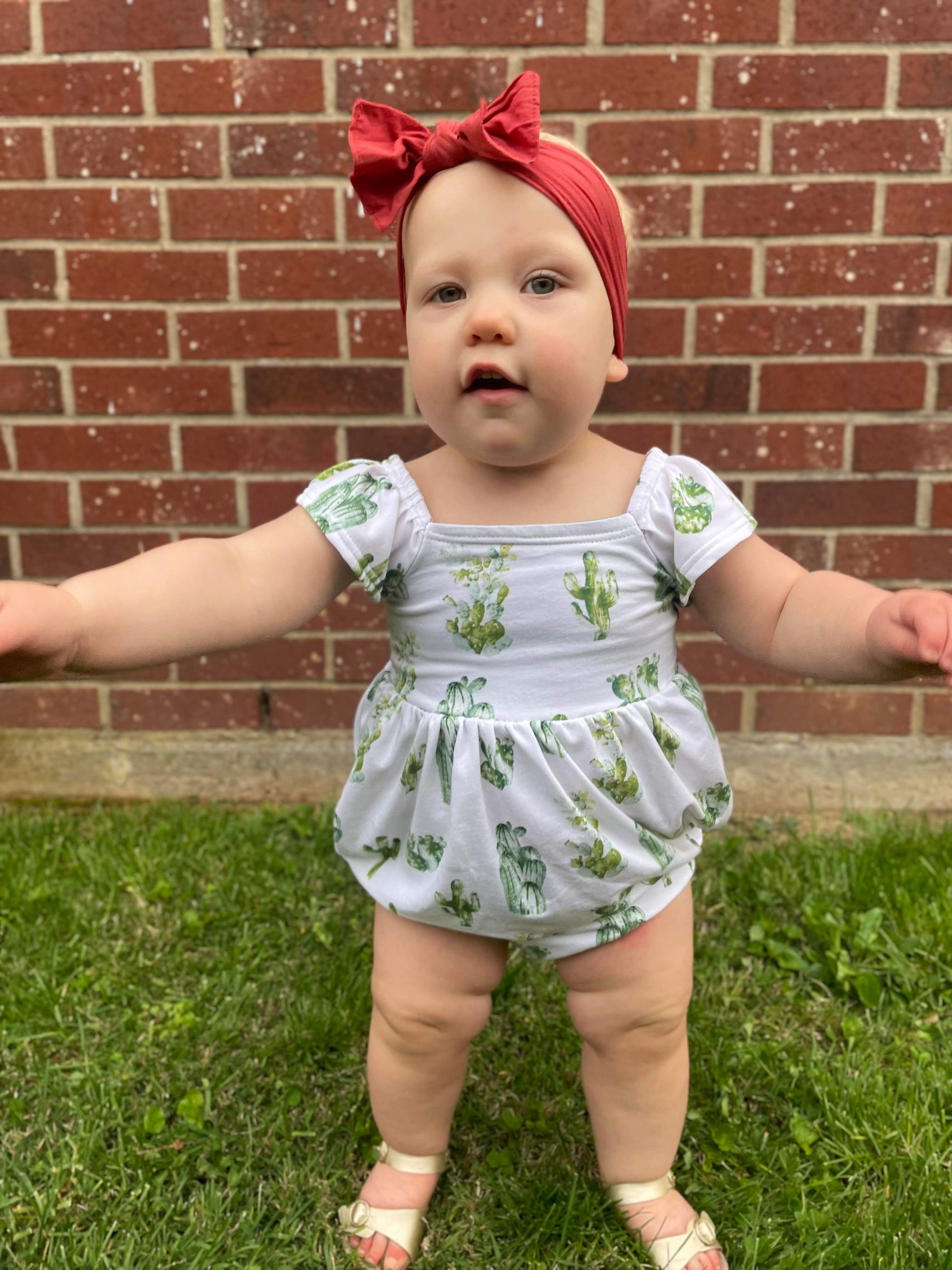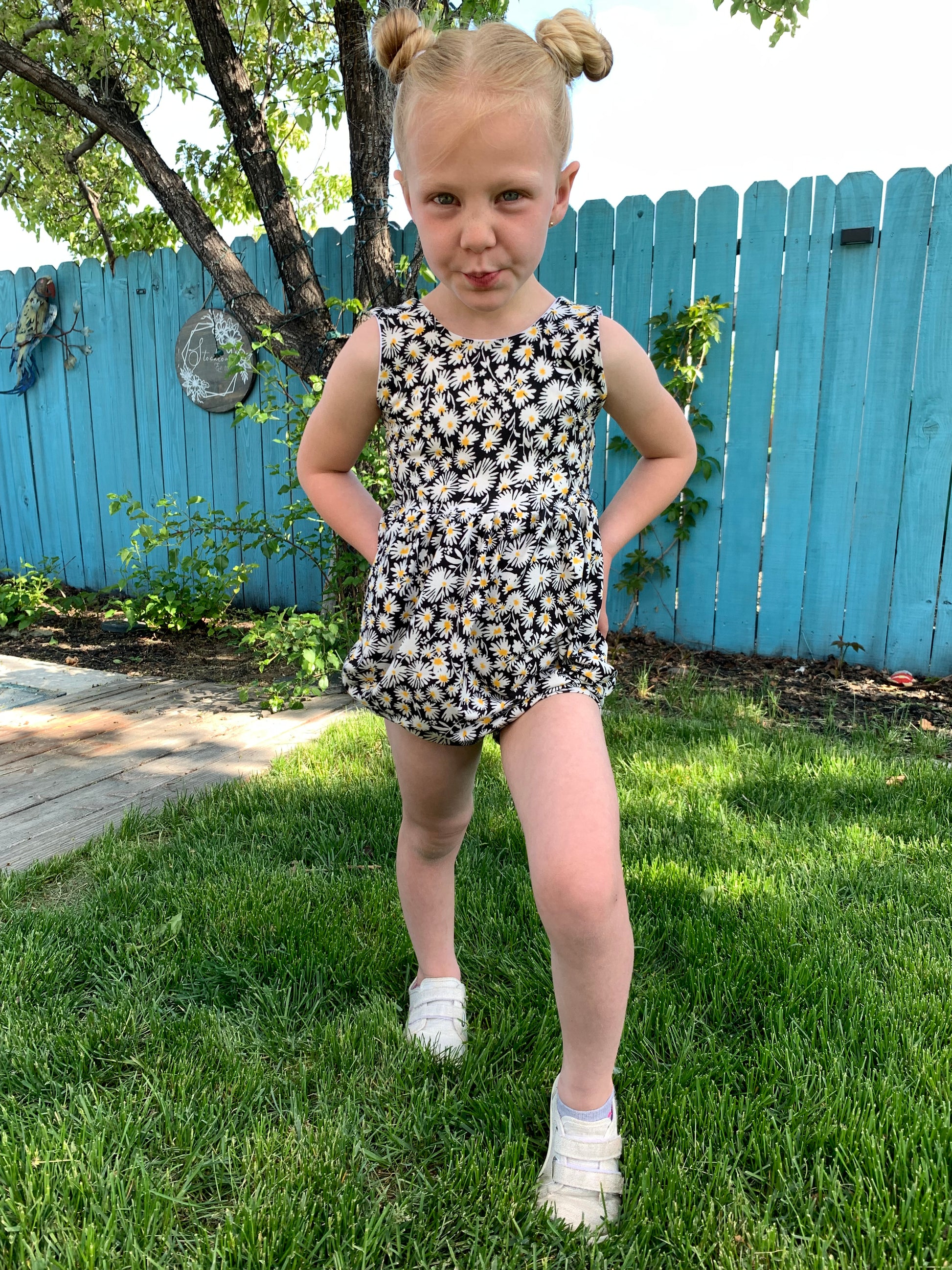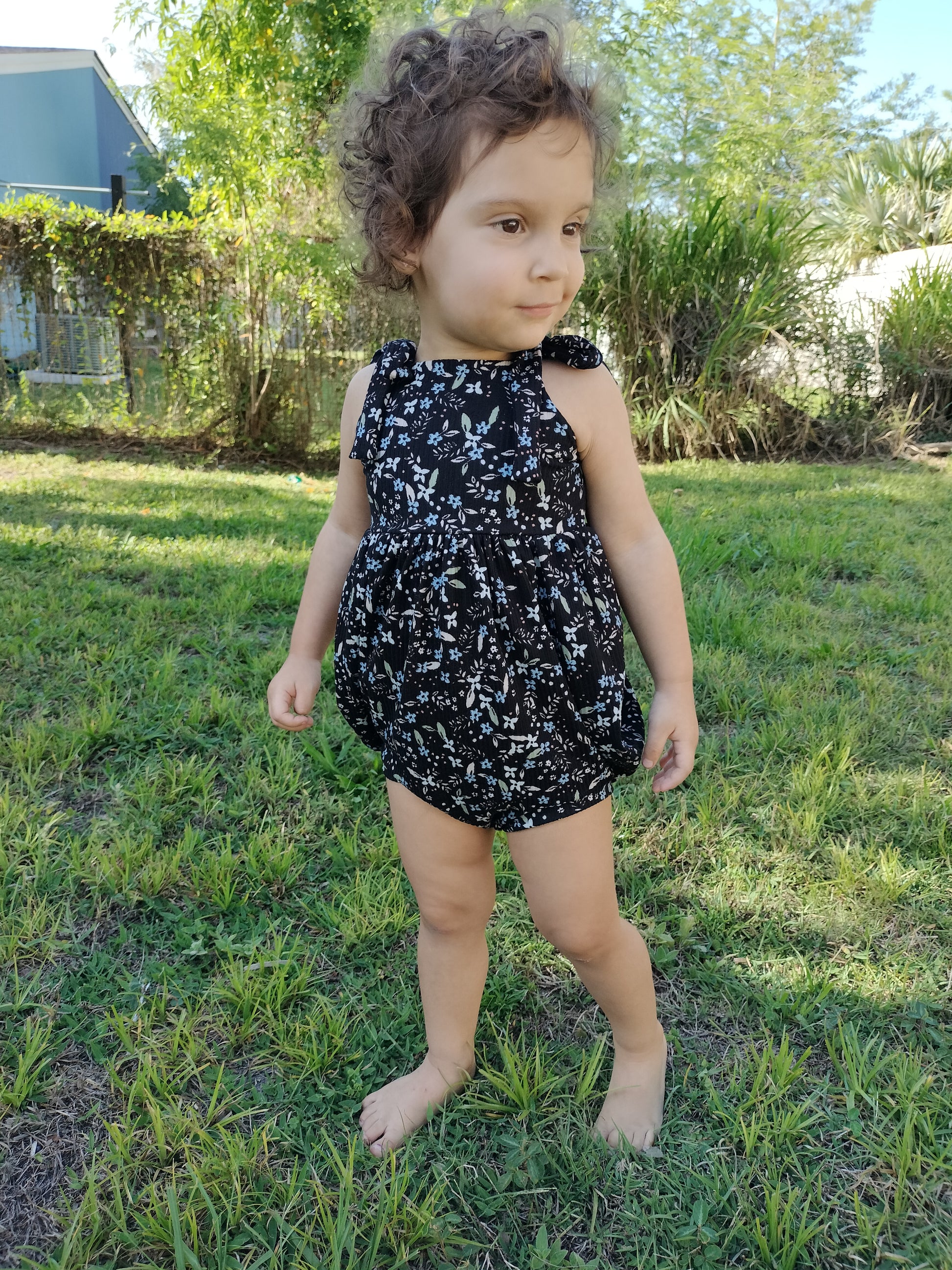 The bubble add-on has been tested with SCC Brielle, Margo and Parker bodices. The bubble add-on comes with two leg finishes, either banded or elastic. These can both be constructed with or without a snap placket for easy access for diaper changes. The bubble add-on is tested through newborn-5T.