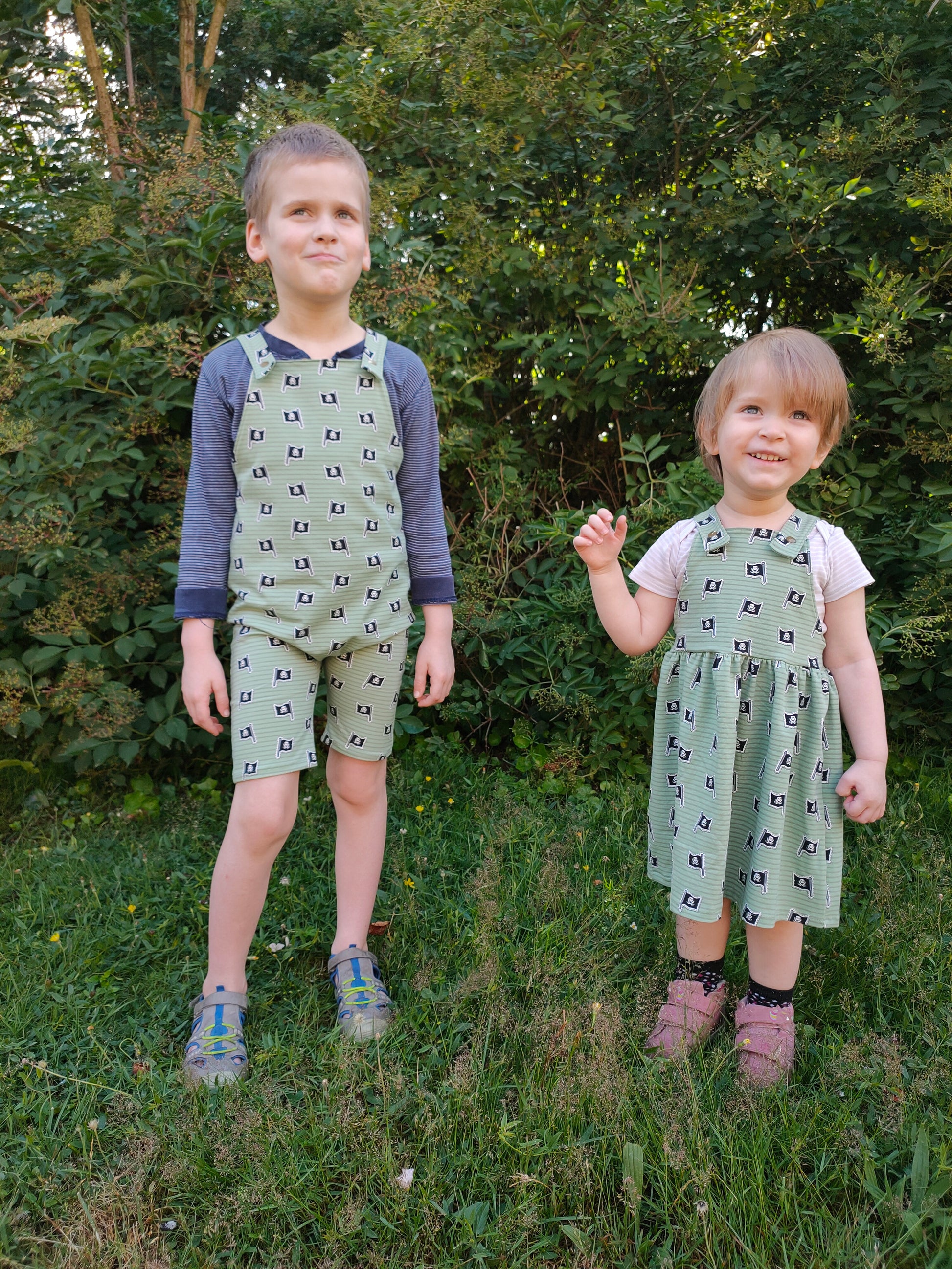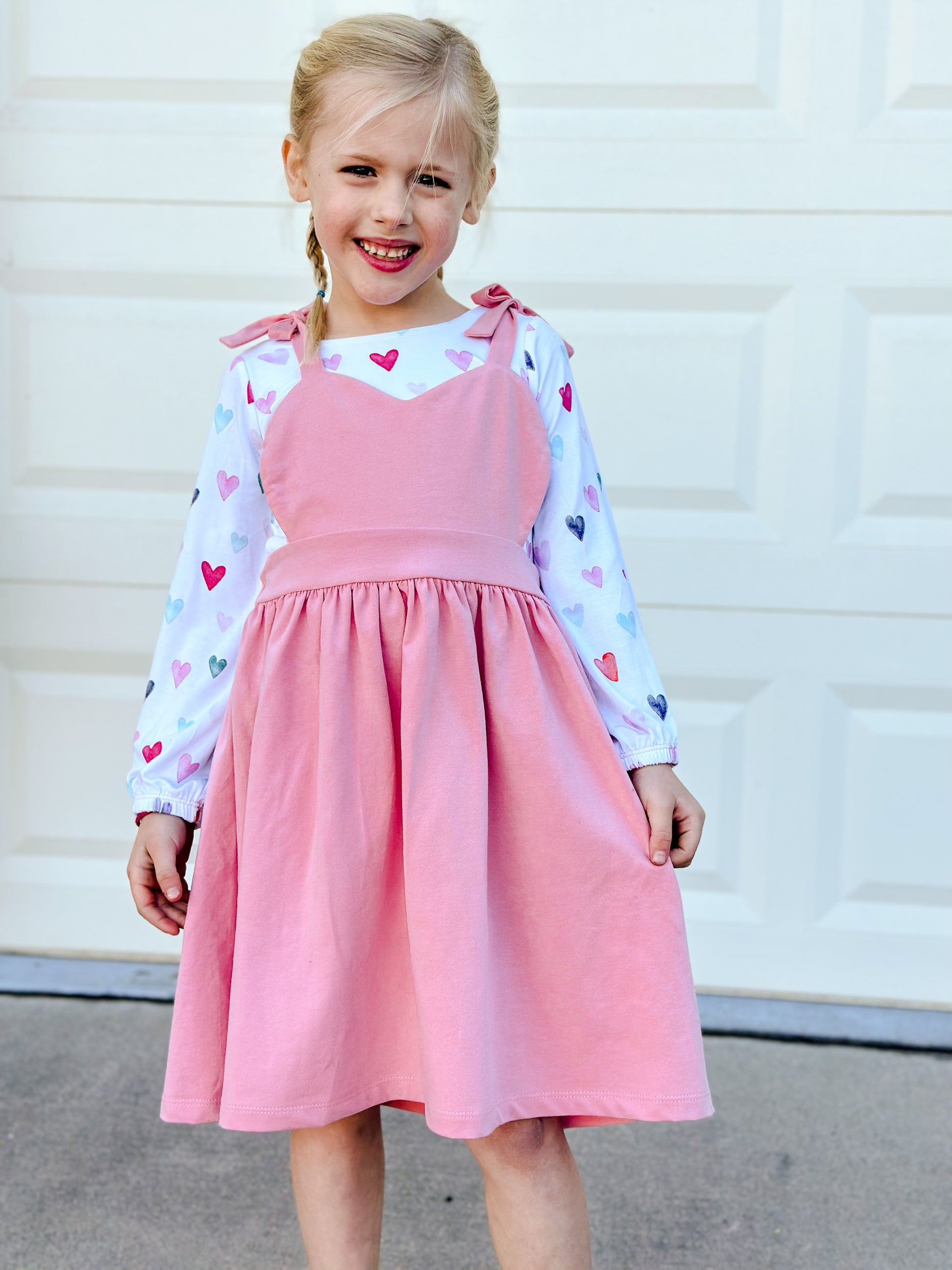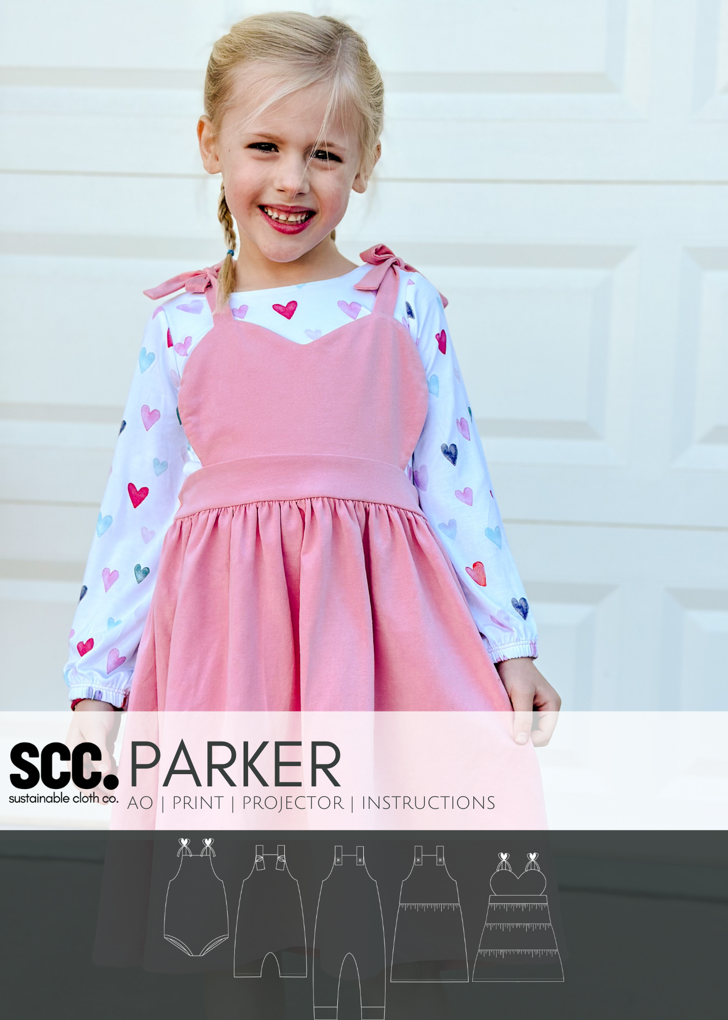 SCC Parker is a overall | dress pattern that has been tested from newborn to youth XL (14/16). Parker has an overall body with 5 different length options- shortie short (nb-5t), mid-thigh short (xs-xl), knee length short, capri and pant. The pant option can be hemmed or cuffed making it a serger only friendly pattern. Parker also comes with a dress skirt that can be basic or tiered.