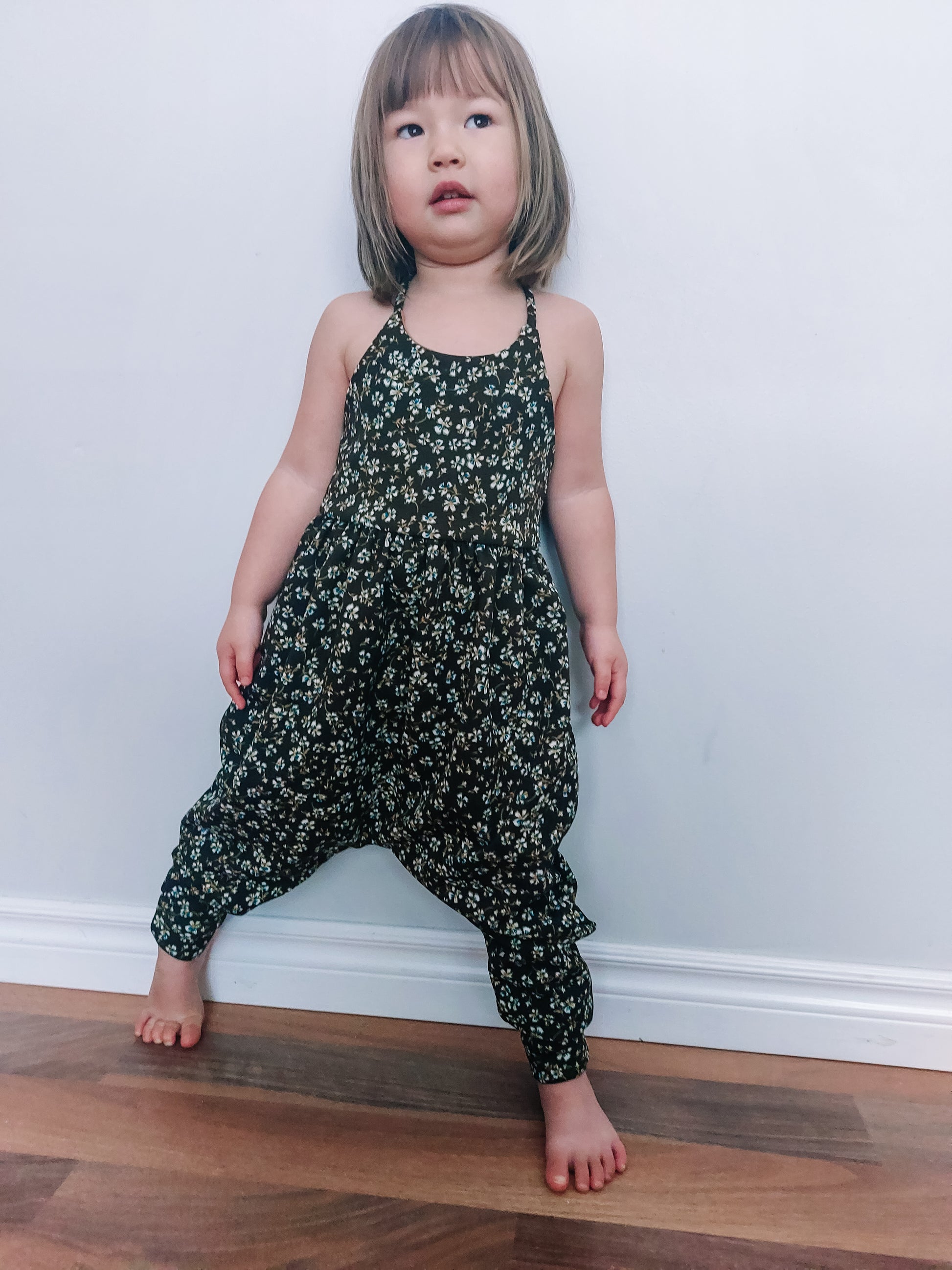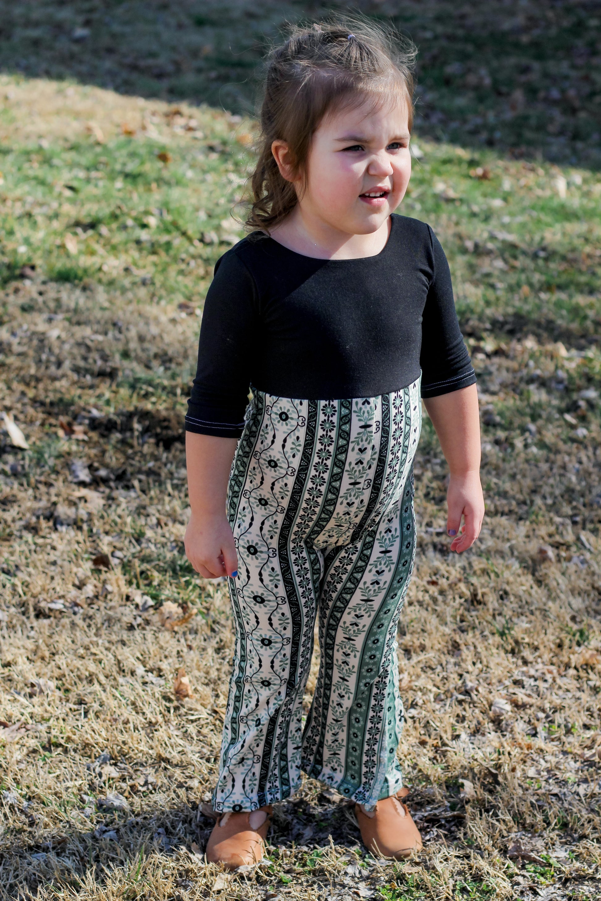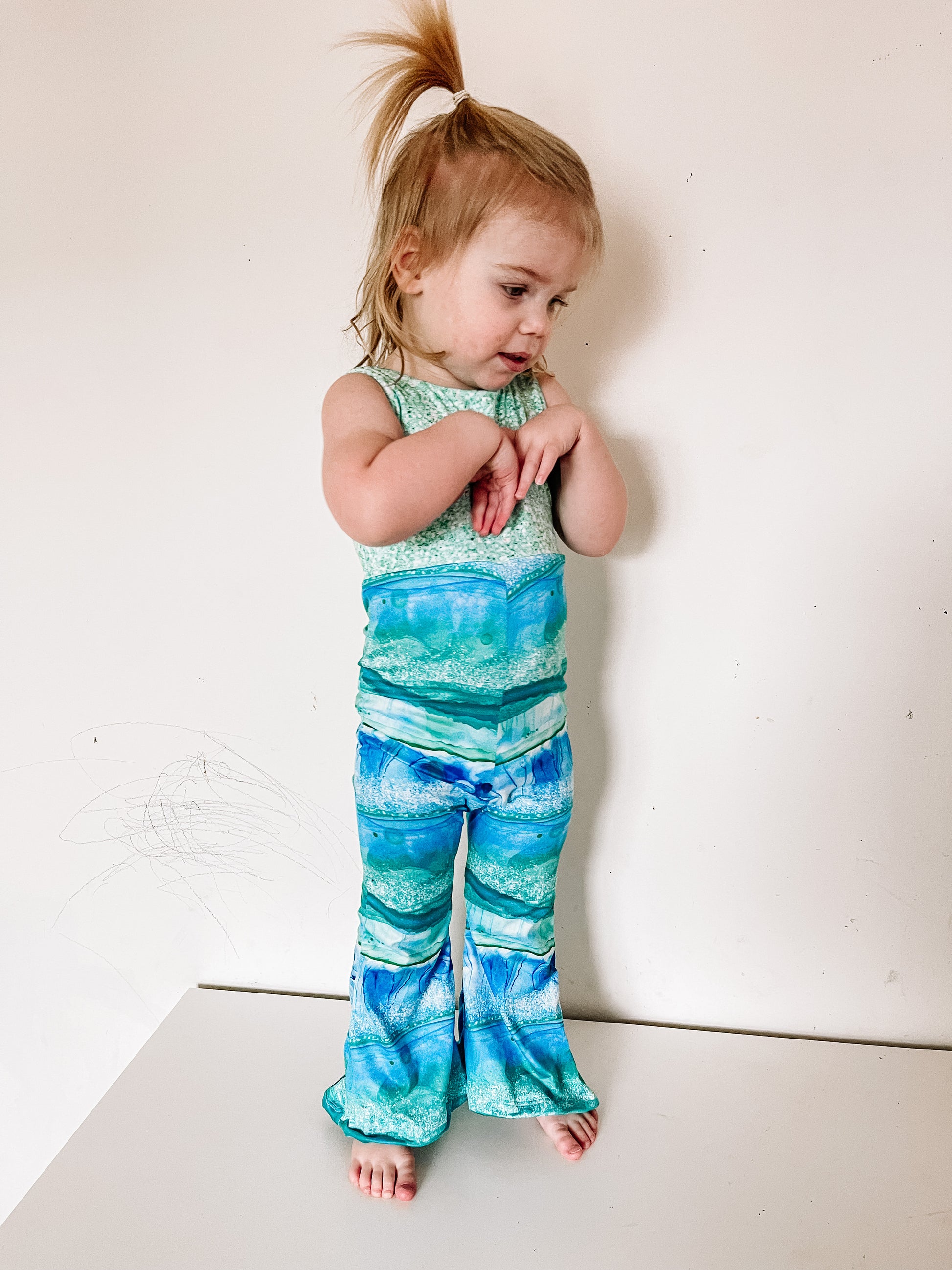 Pant Add-On Details: The pant add-on is a sewing pattern that includes options for creating a romper with a bodice pattern of your choice (this has been tested on the Baby-Youth Brielle sewing pattern for reference). With the pant add-on you can create a flare or drop crotch with a gathered waist romper or add elastic to the flares to create stand alone pants. This pattern has been tested in sizes newborn through youth XL (14/16) and is drafted for knit fabrics with 4 way stretch.