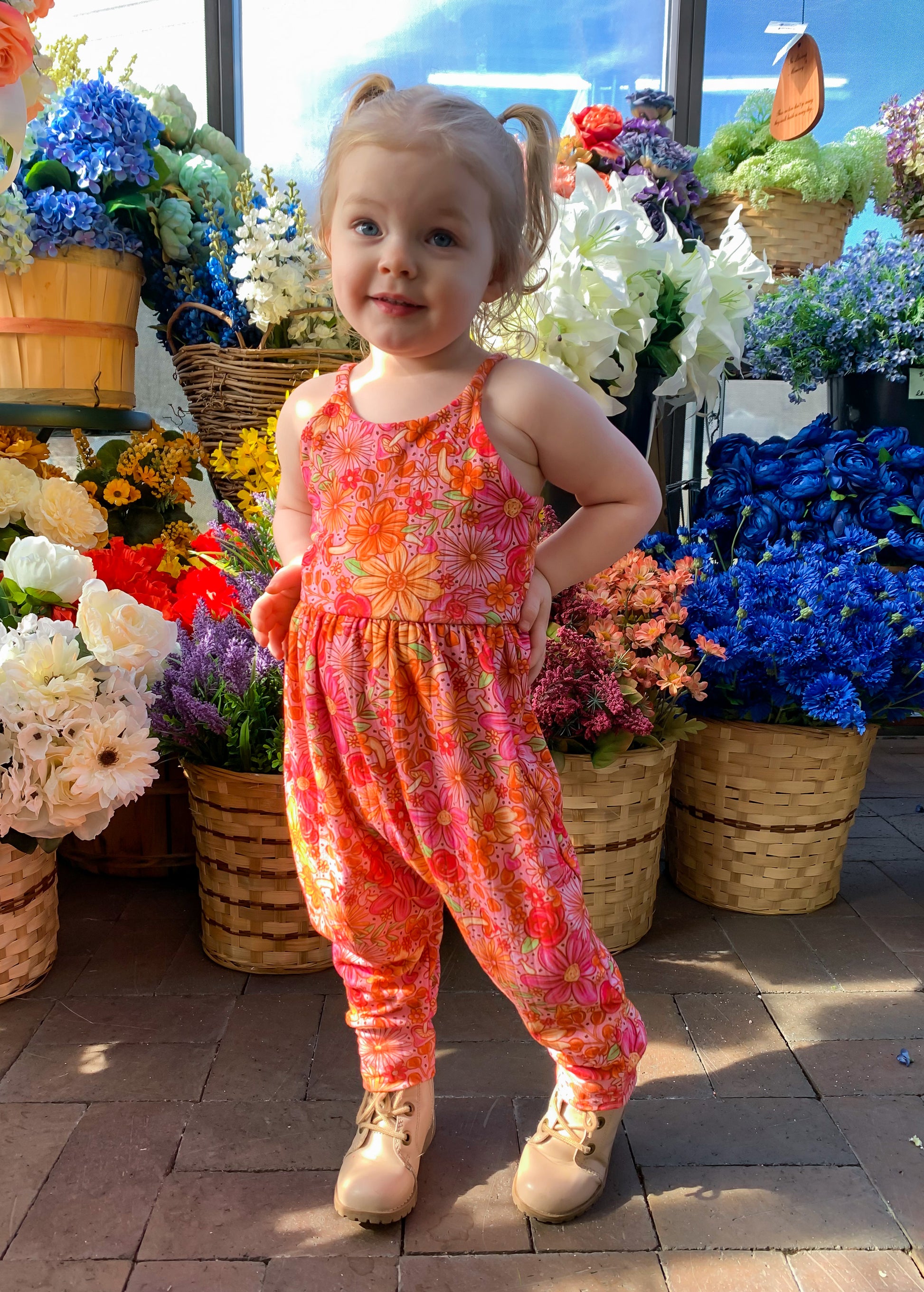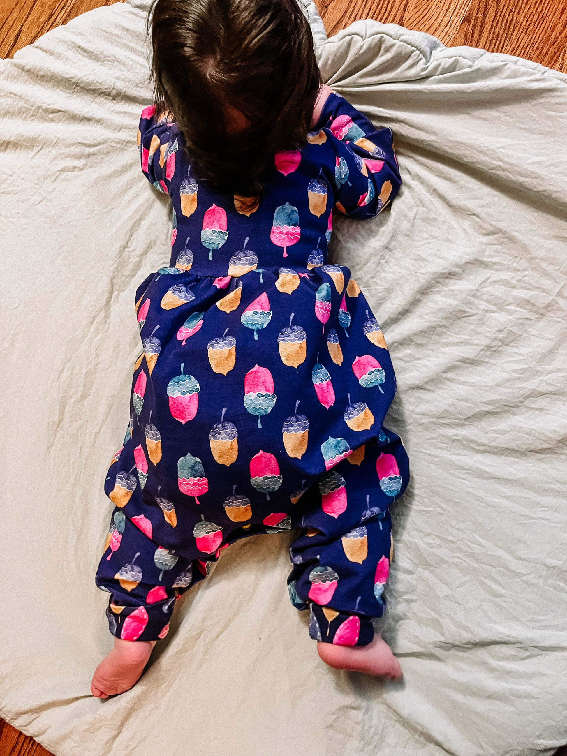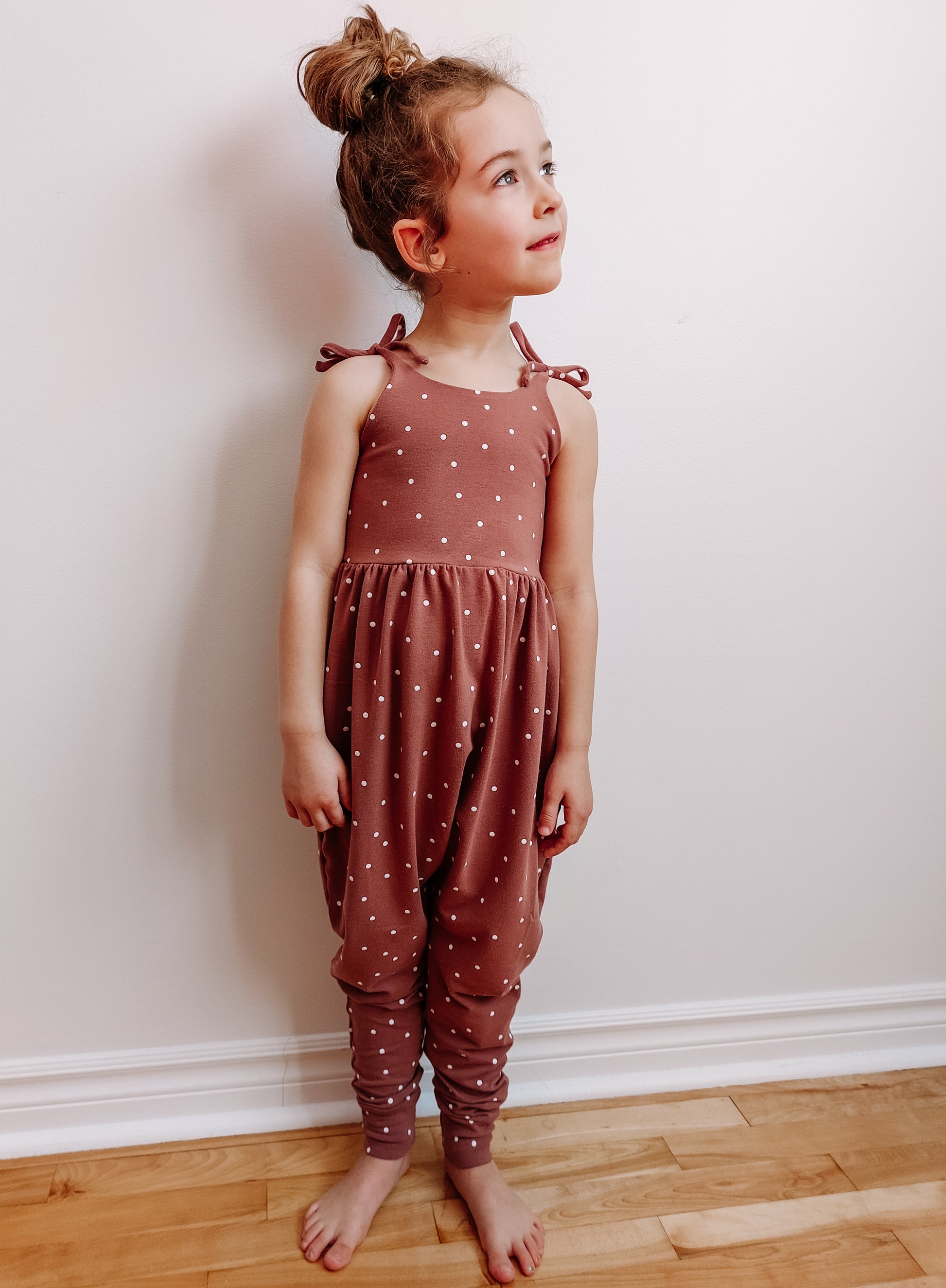 Pant Add-On Details: The pant add-on is a sewing pattern that includes options for creating a romper with a bodice pattern of your choice (this has been tested on the Baby-Youth Brielle sewing pattern for reference). With the pant add-on you can create a flare or drop crotch with a gathered waist romper or add elastic to the flares to create stand alone pants. This pattern has been tested in sizes newborn through youth XL (14/16) and is drafted for knit fabrics with 4 way stretch.