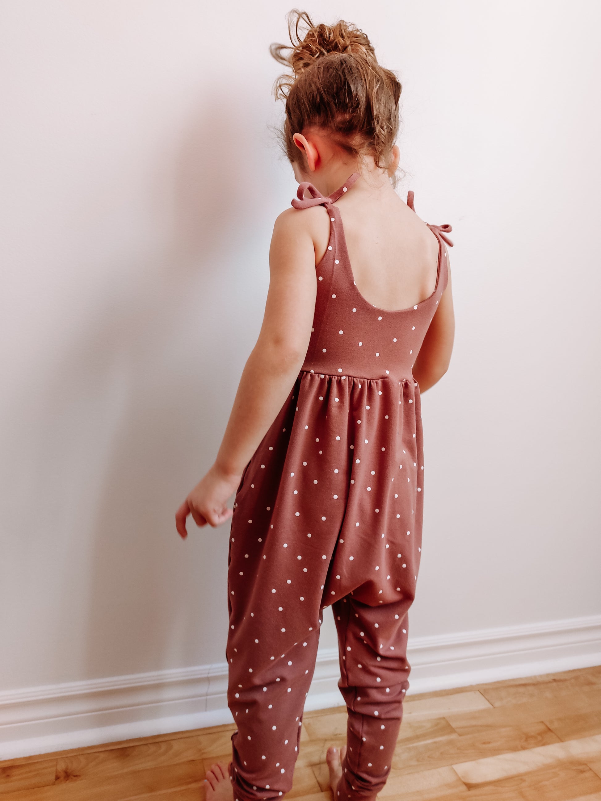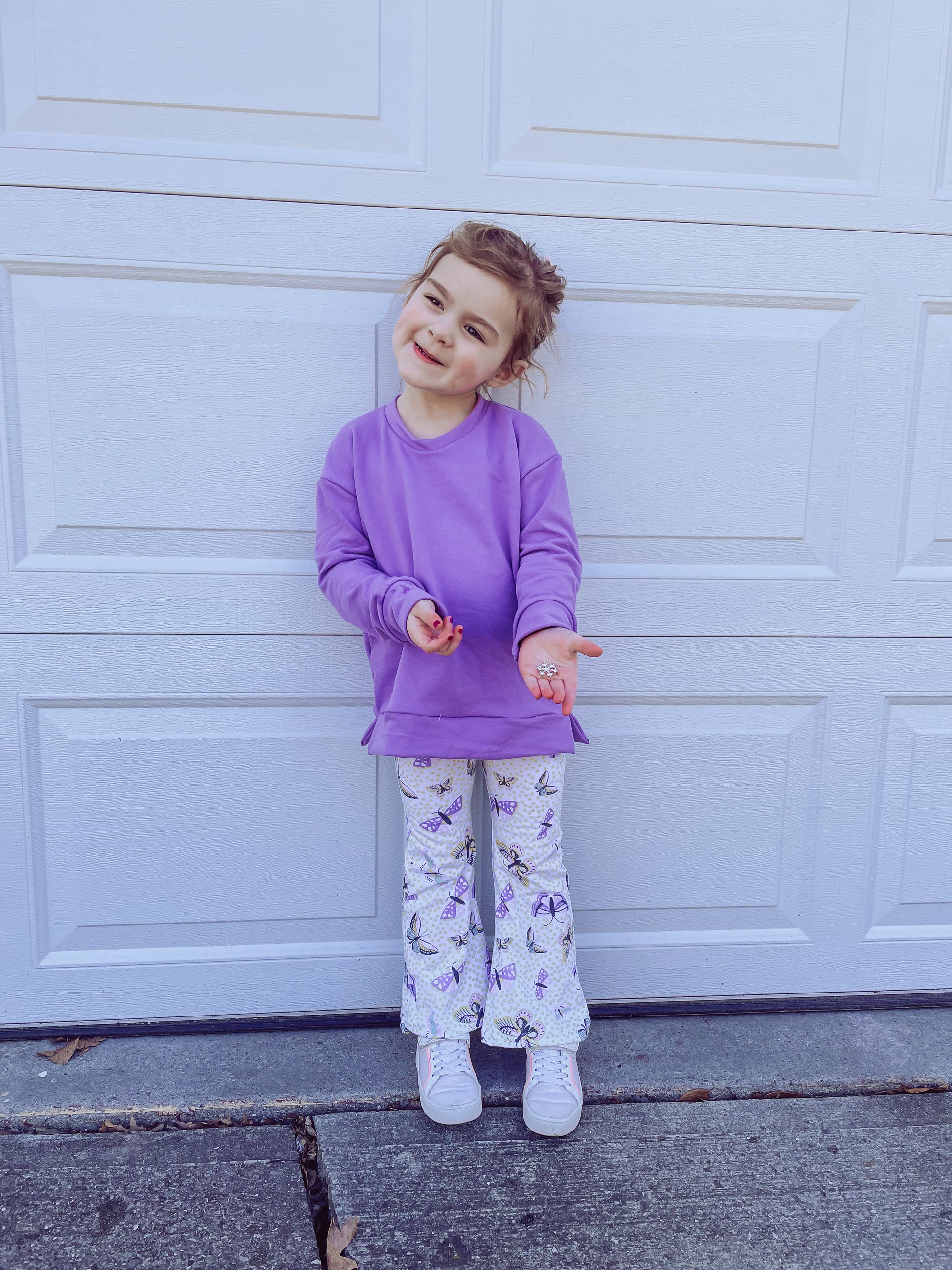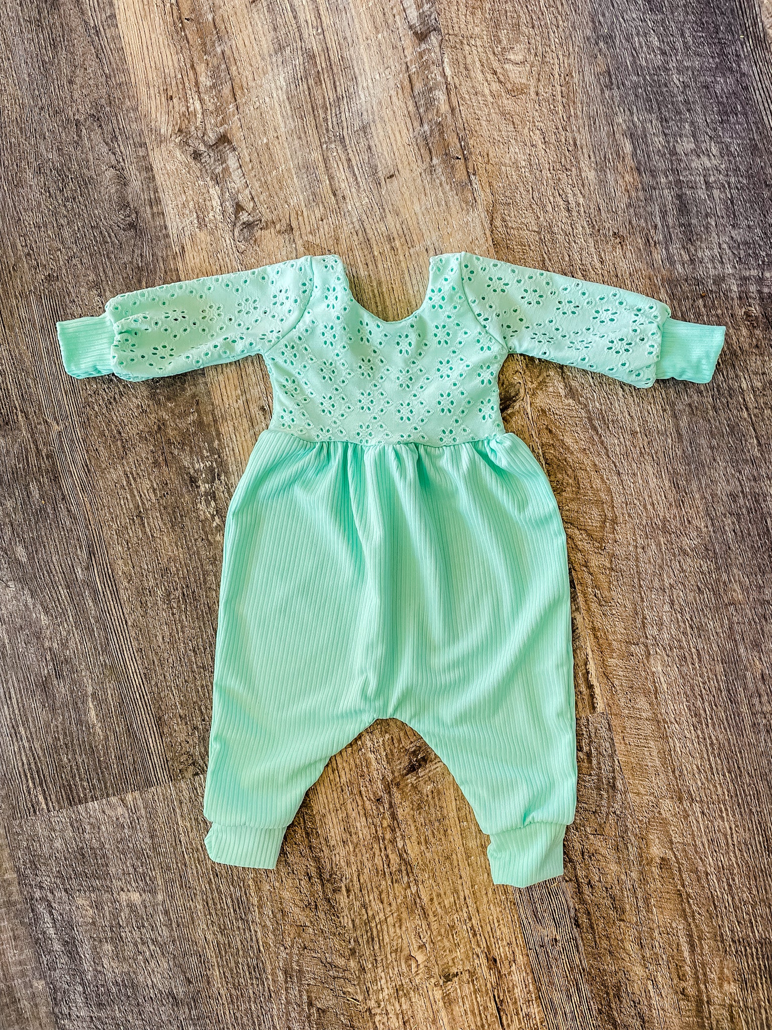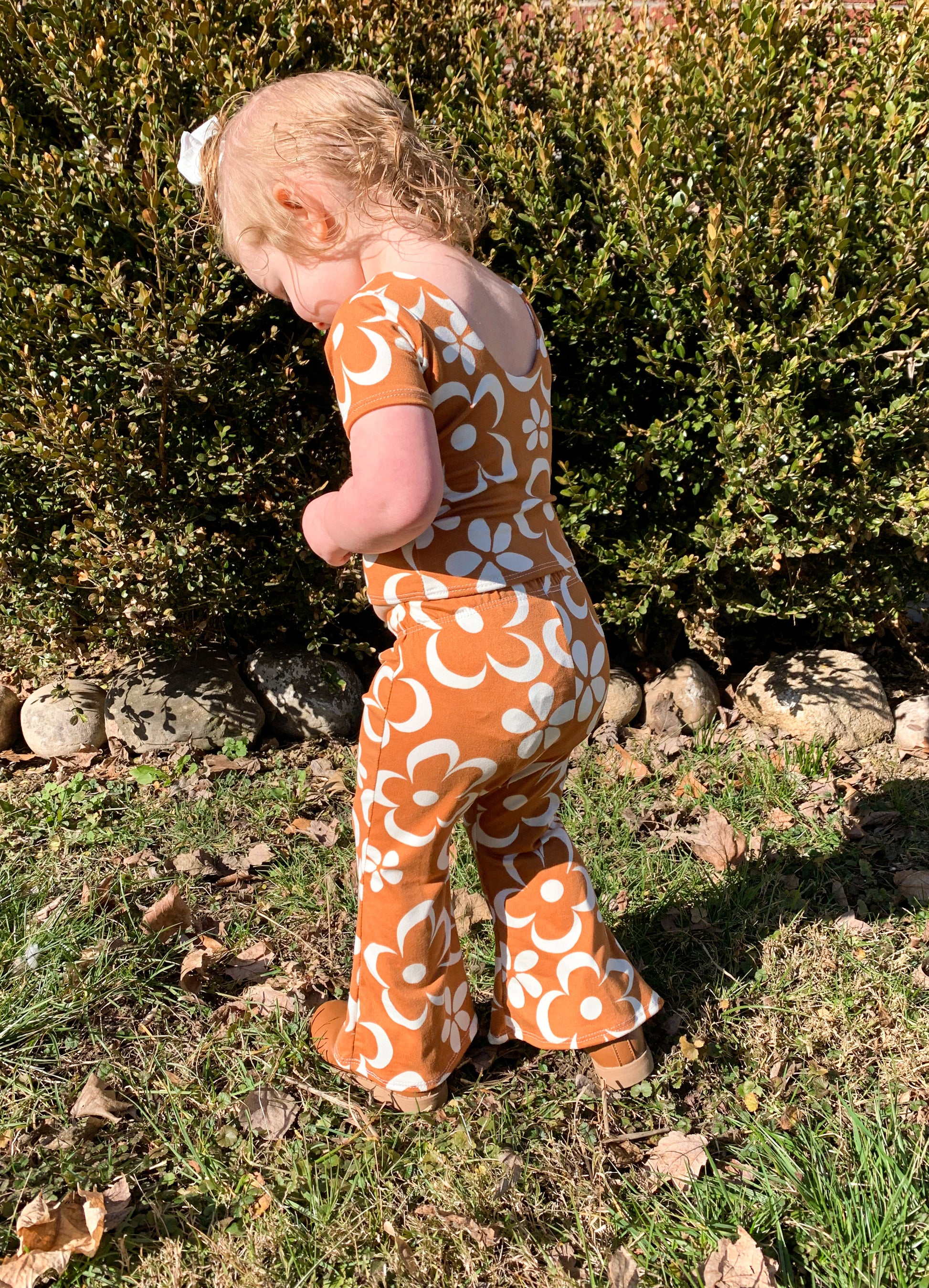 The pant add-on is a sewing pattern that includes options for creating a romper with a bodice pattern of your choice (this has been tested on the Baby-Youth Brielle sewing pattern for reference). With the pant add-on you can create a flare or drop crotch with a gathered waist romper or add elastic to the flares to create stand alone pants. This pattern has been tested in sizes newborn through youth XL (14/16) and is drafted for knit fabrics with 4 way stretch.