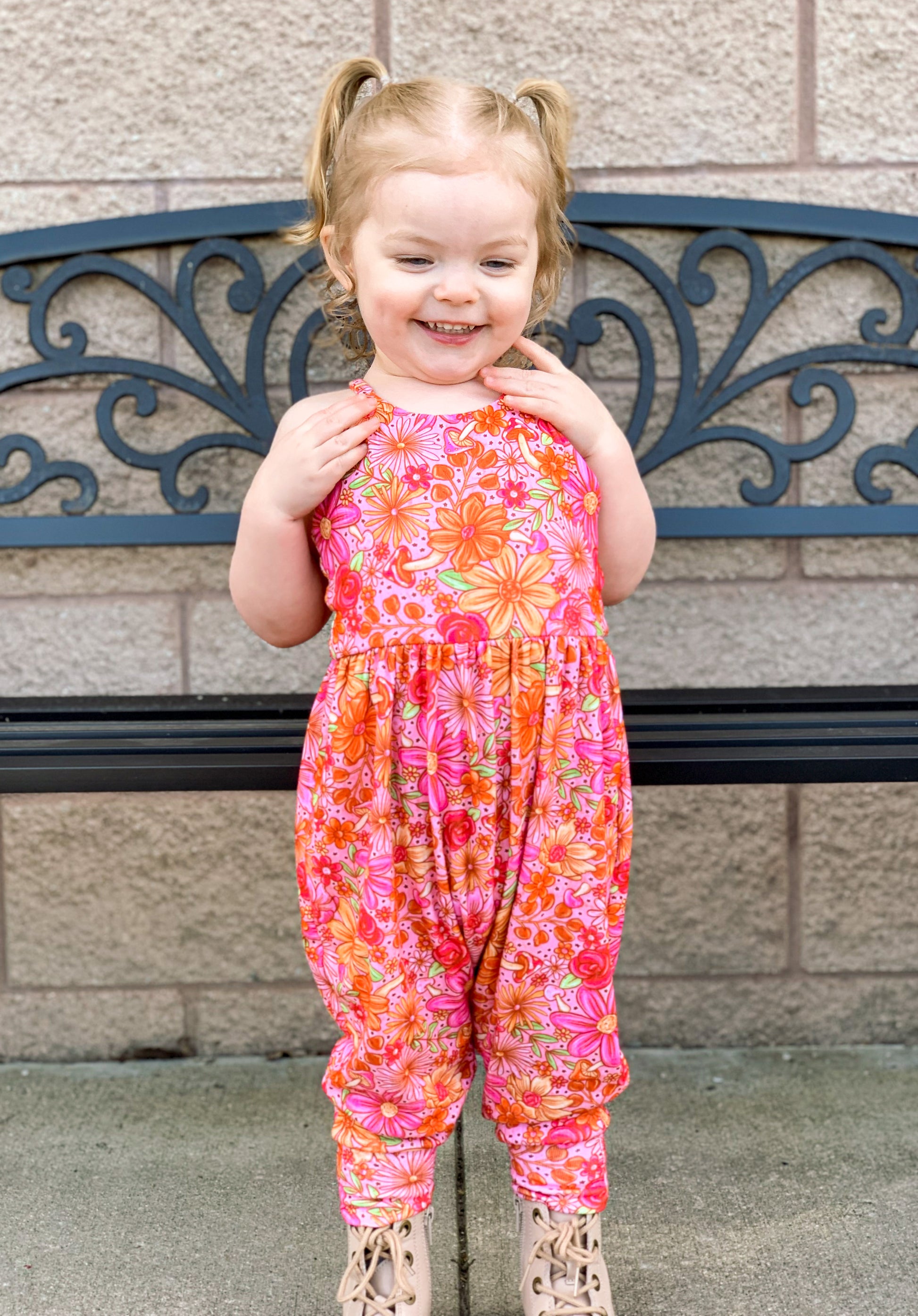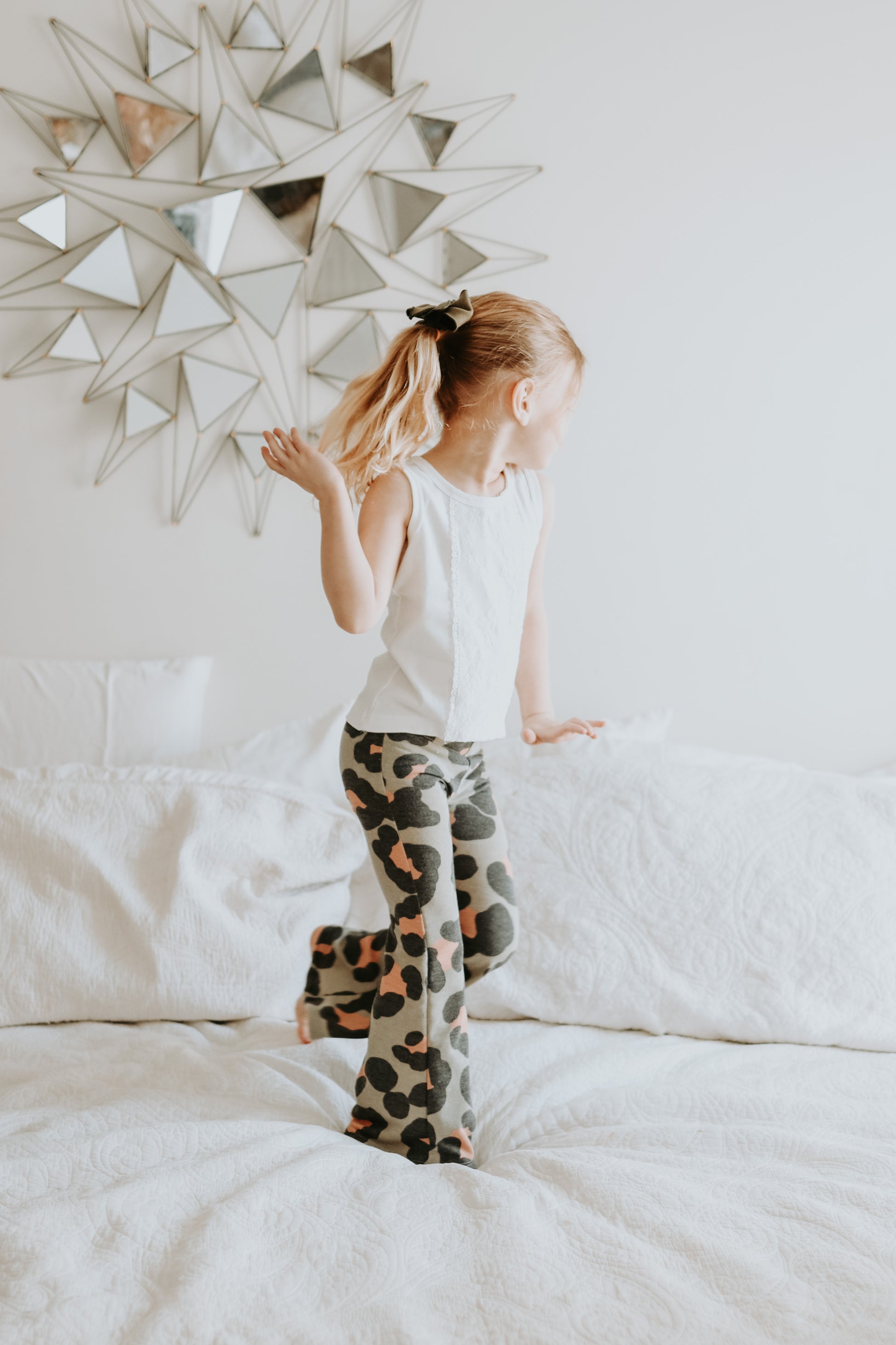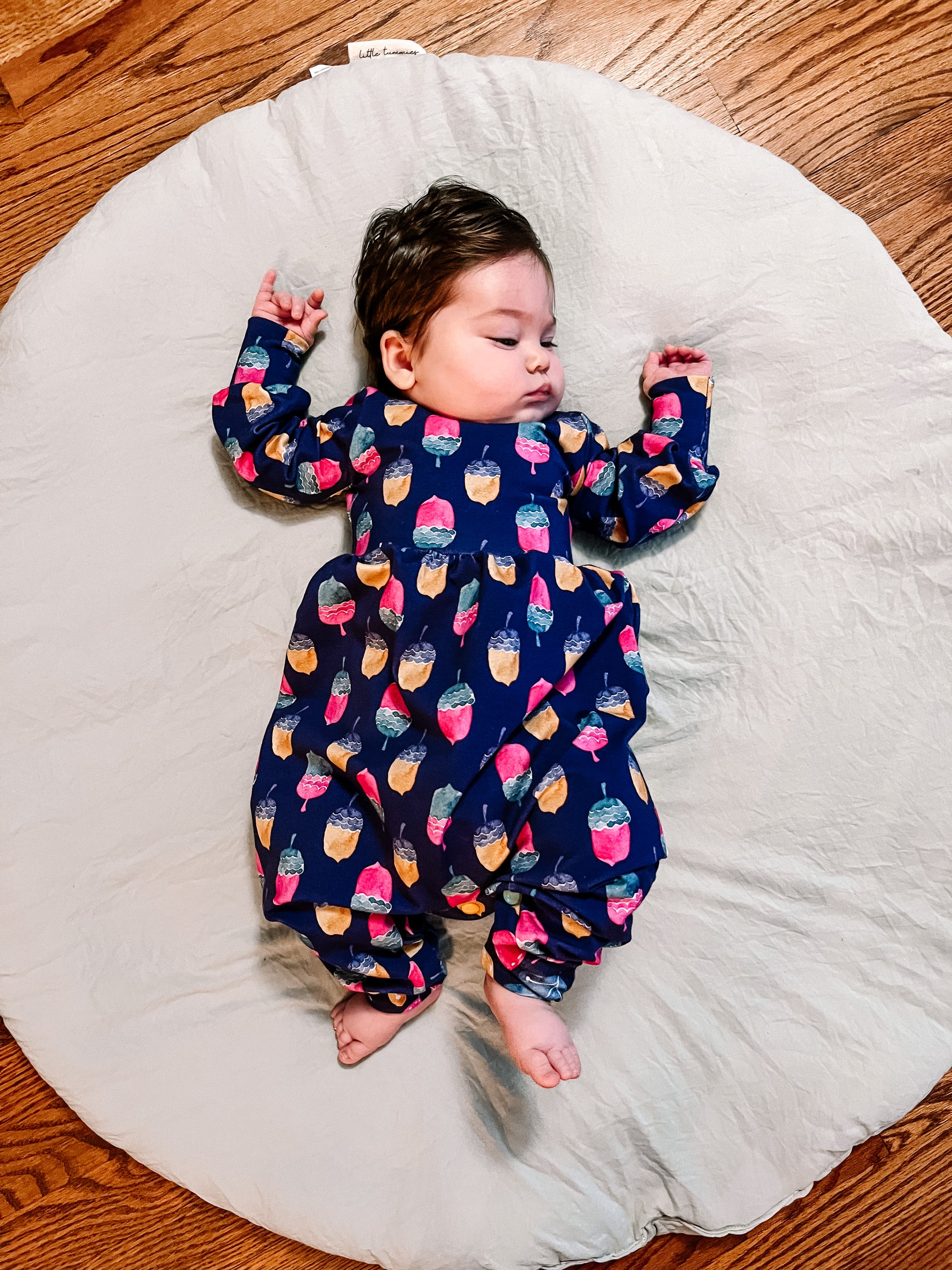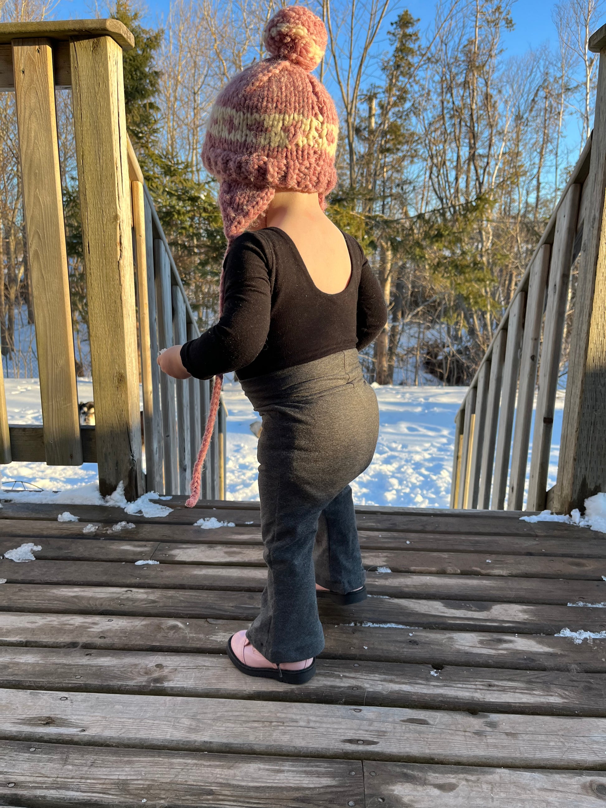 The pant add-on is a sewing pattern that includes options for creating a romper with a bodice pattern of your choice (this has been tested on the Baby-Youth Brielle sewing pattern for reference). With the pant add-on you can create a flare or drop crotch with a gathered waist romper or add elastic to the flares to create stand alone pants. This pattern has been tested in sizes newborn through youth XL (14/16) and is drafted for knit fabrics with 4 way stretch.