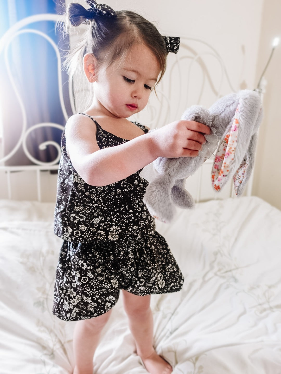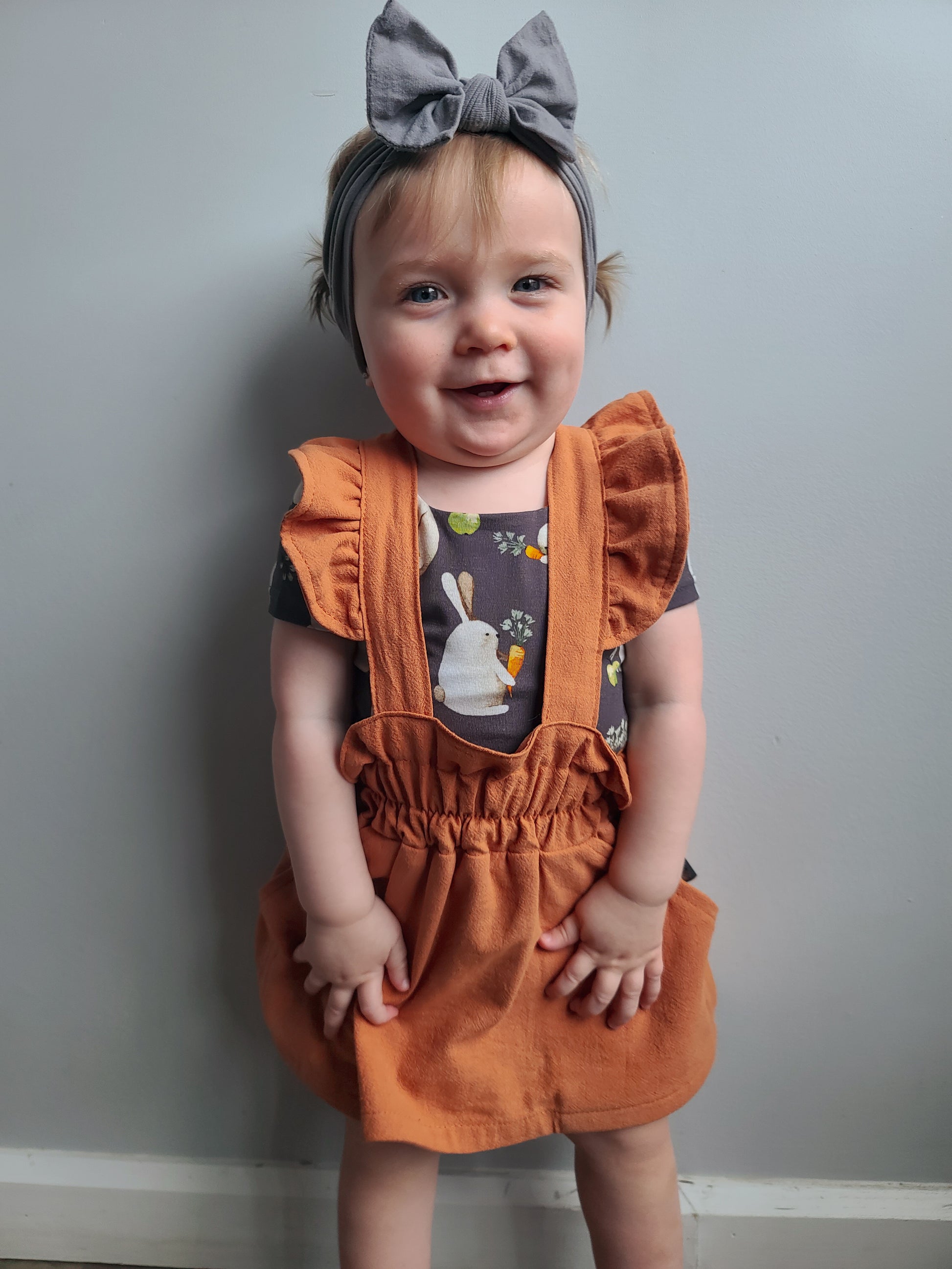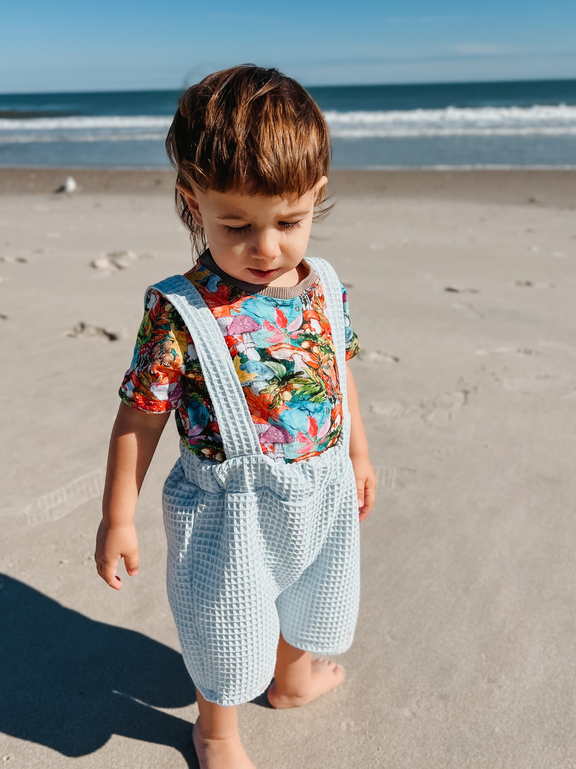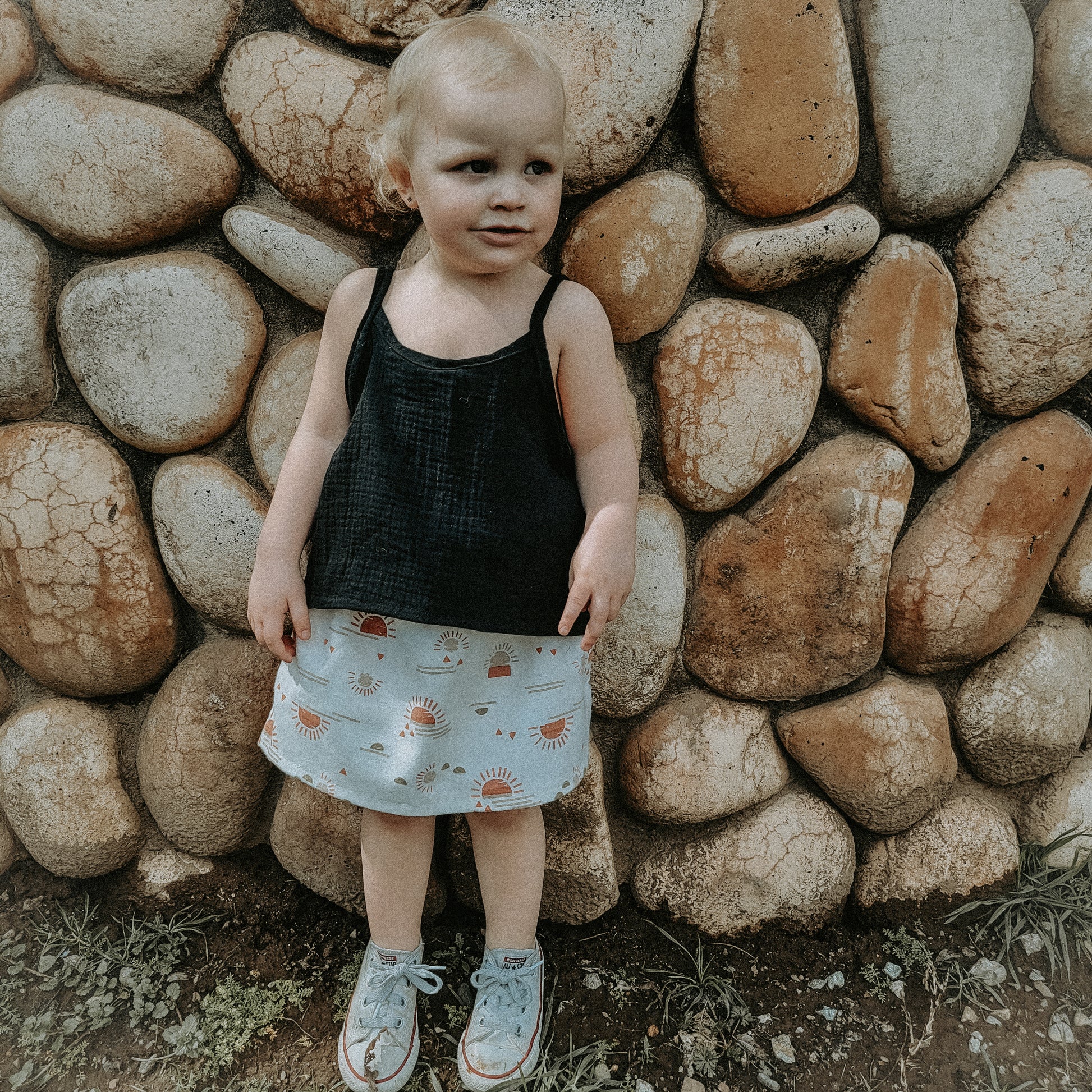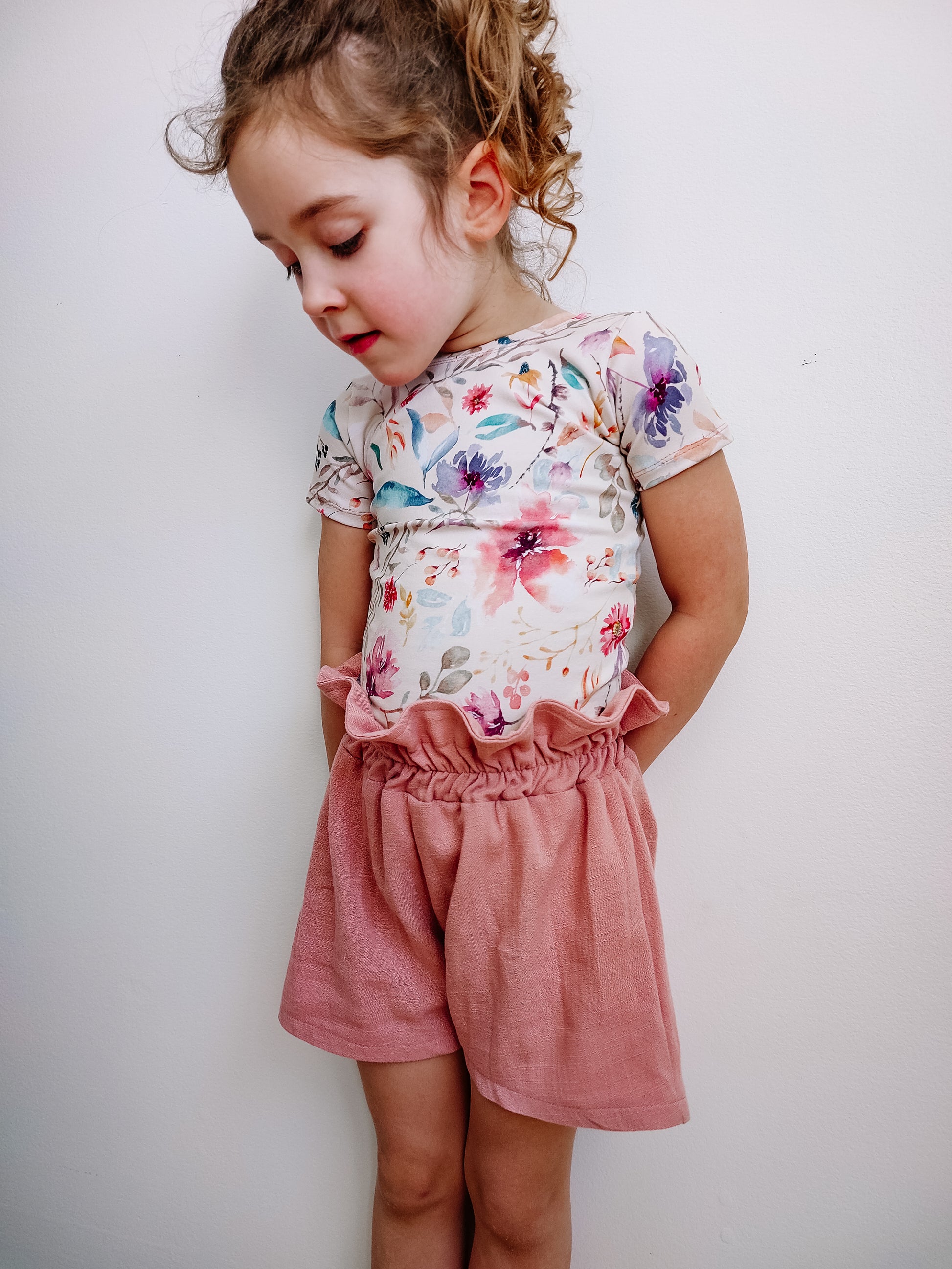 Sunny comes in many variations and options perfect for all seasons and genders. With two waistband options- basic or paper bag waist, two rise options- mid or high rise and the option of having suspenders. Sunny is a quick and satisfying woven sew for all levels of sewists. Sunny has been tested from newborn-youth xl(14/16).