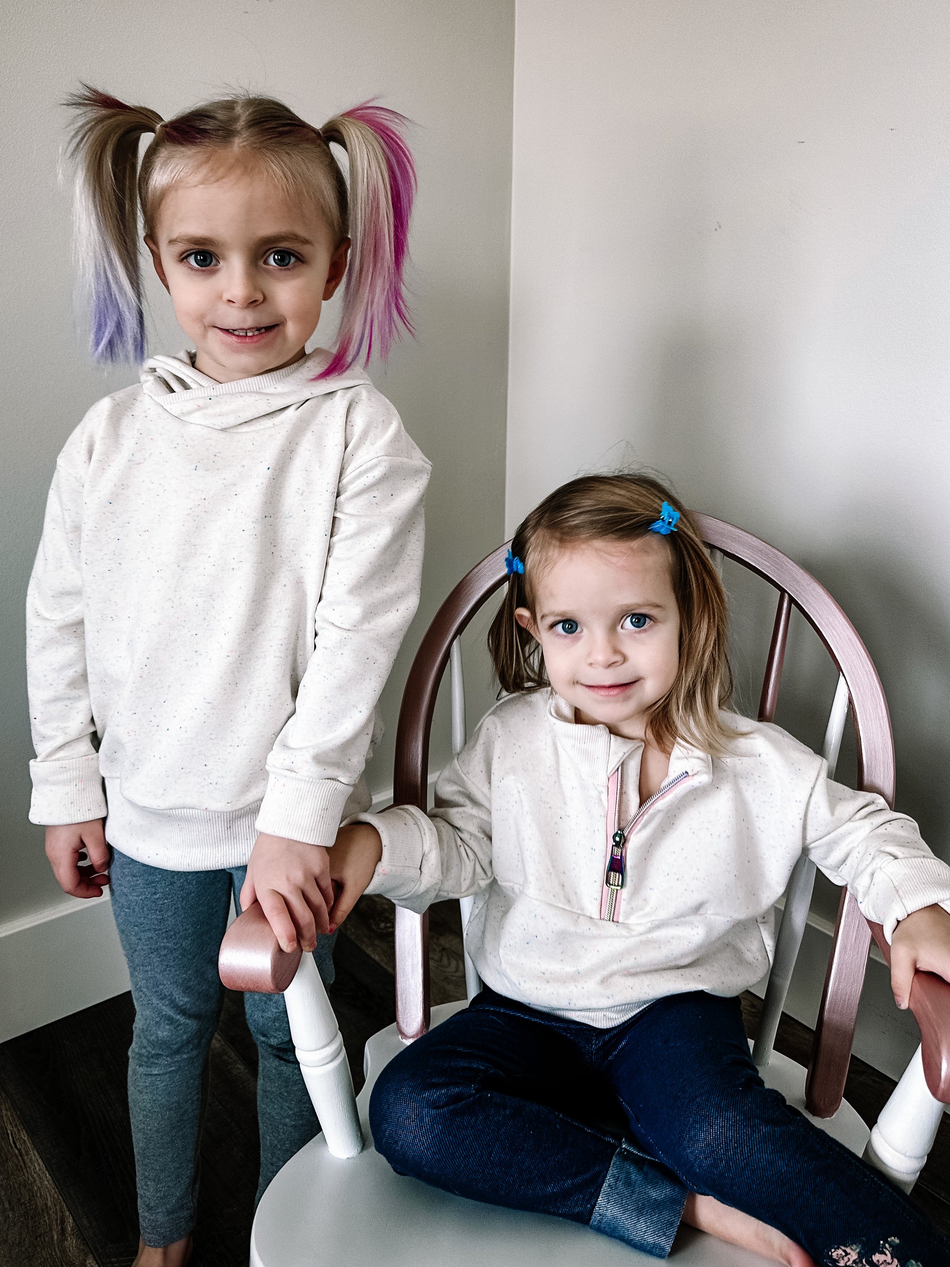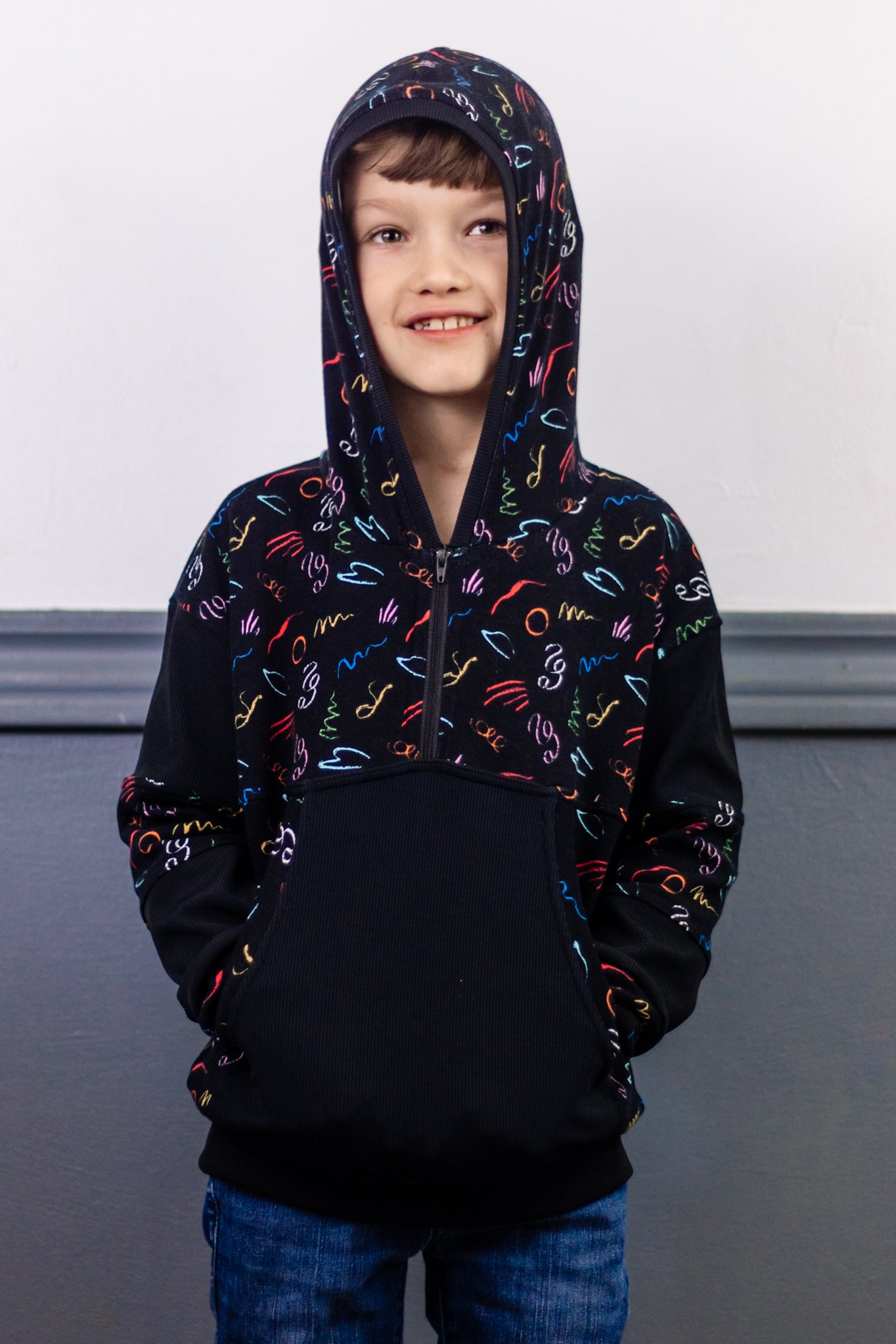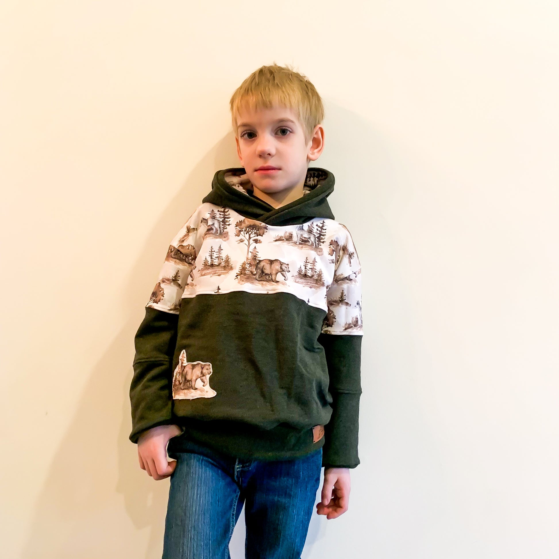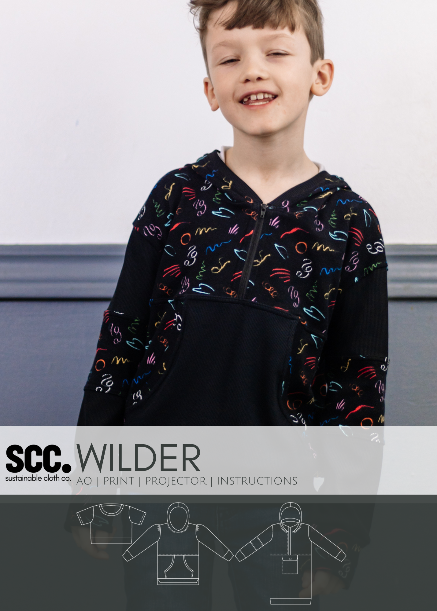 The wilder pattern is a sweater that is perfect for all seasons. Featuring a 3/4 zipper, basic front, or color block front|back option and in 3 different lengths- crop, top and tunic. You can finish the waist with a hem (crop only), basic waistband or split hem waistband. This pattern has been tested in newborn-youth xl. The wilder pattern is drafted for knit fabrics with 2 way or 4 way stretch.
