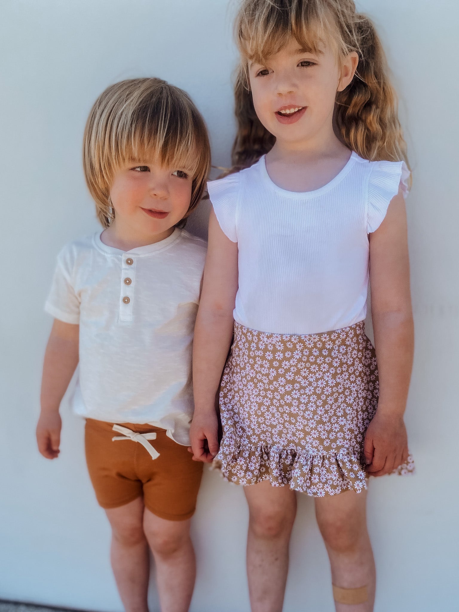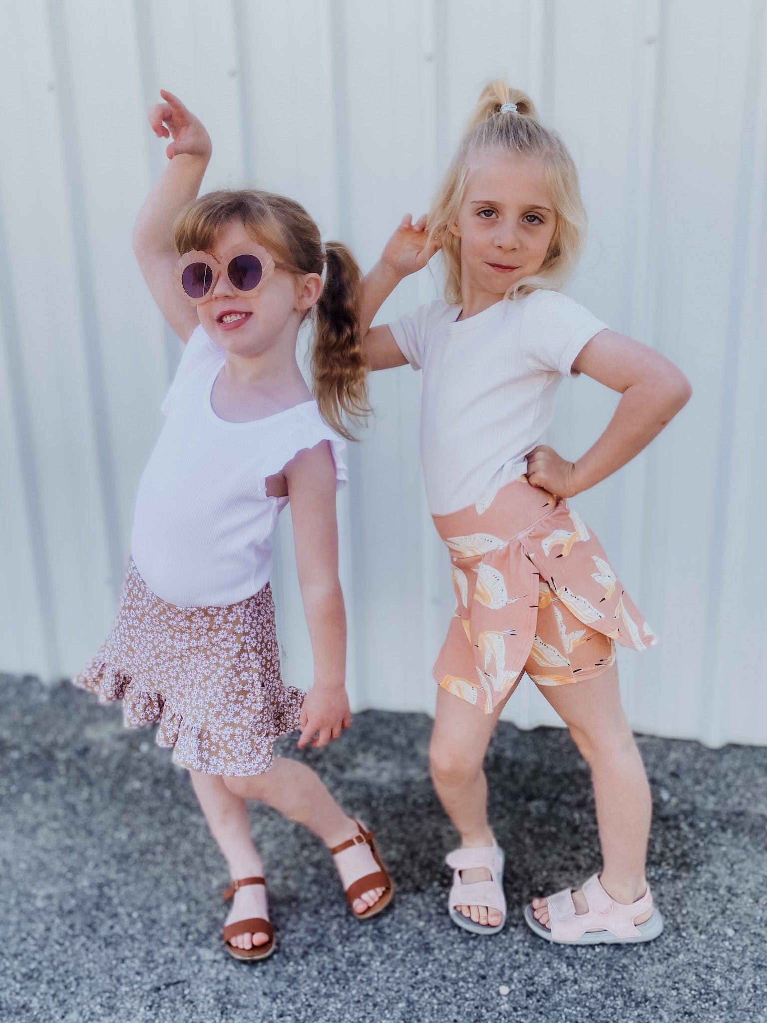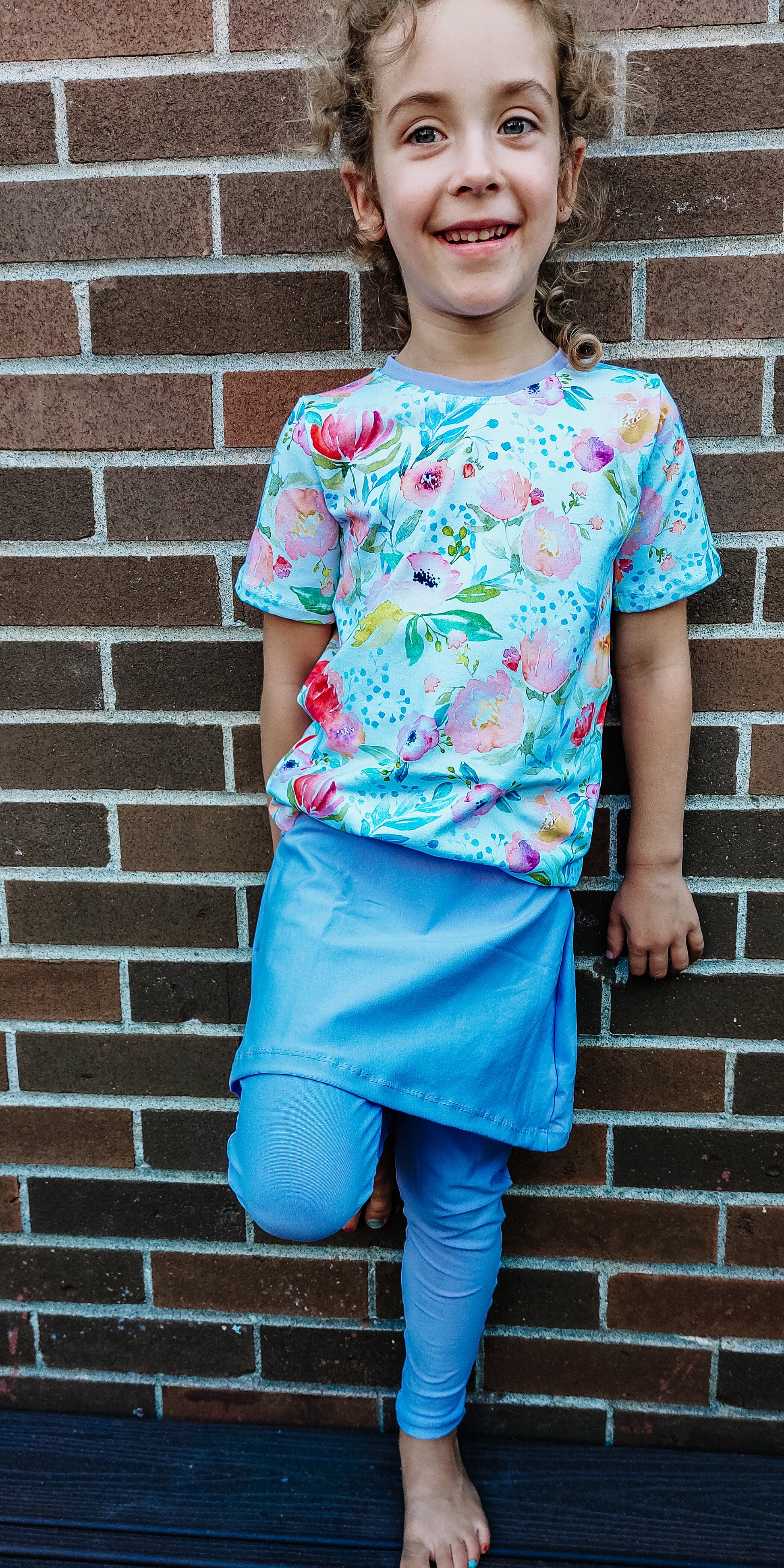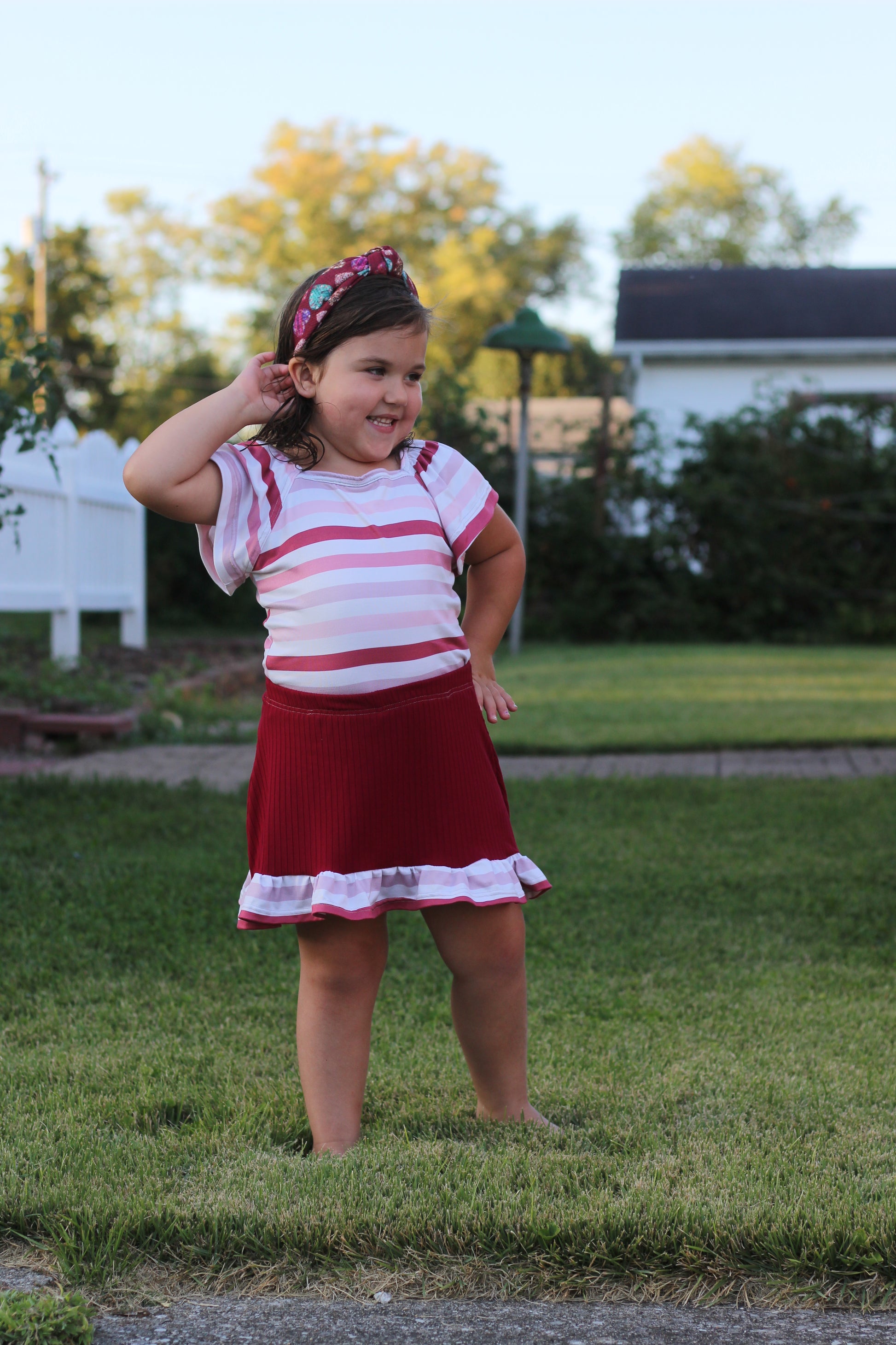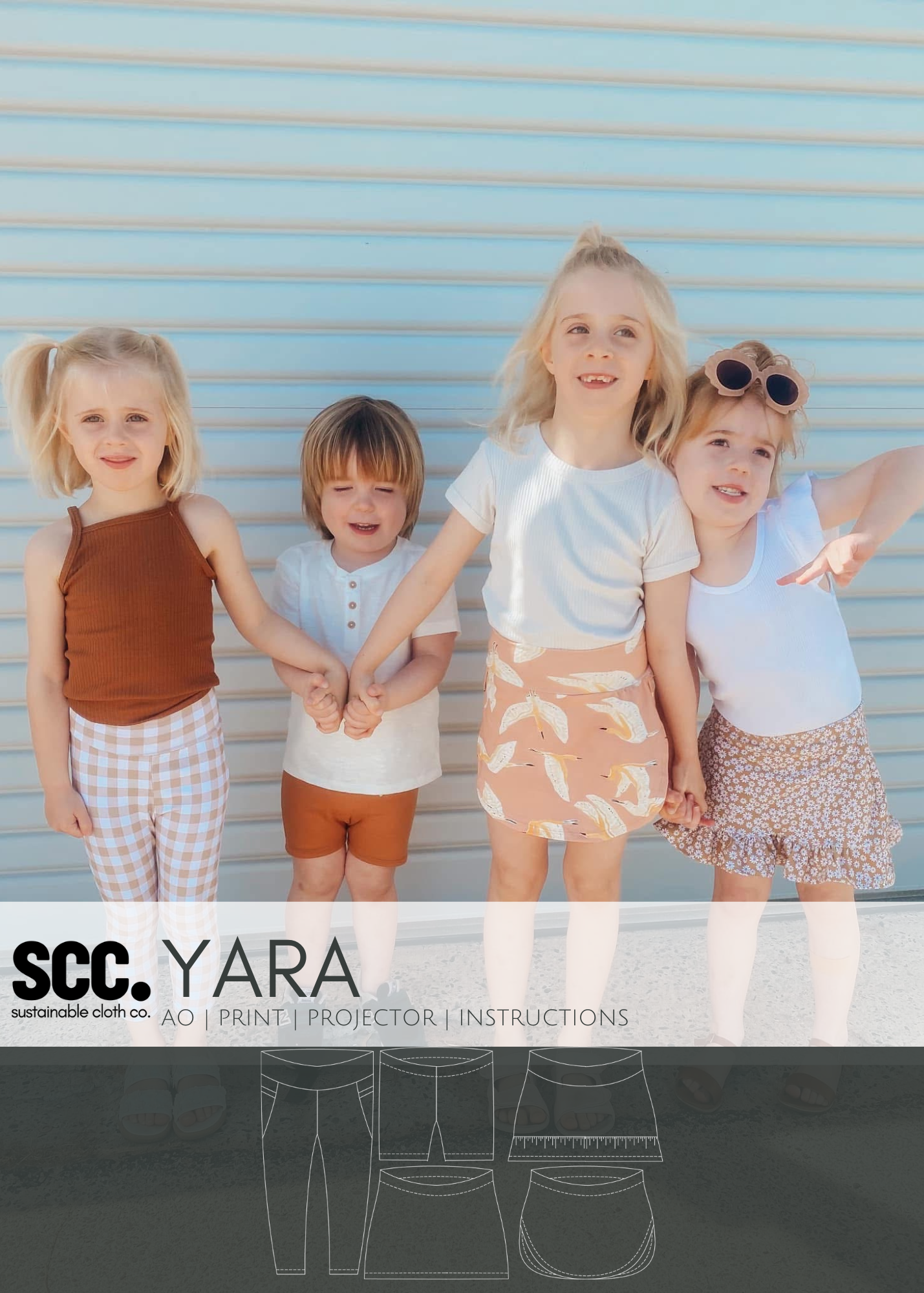 SCC Yara is a pattern that includes many different variations for bottoms. Basic skirt/skort, basic skirt/skort with ruffle, tulip skort, tulip skort with ruffle, bike shorts or leggings. This is such a quick and satisfying sew for all level of sewists. Yara is available in both baby-youth and adult sizes.