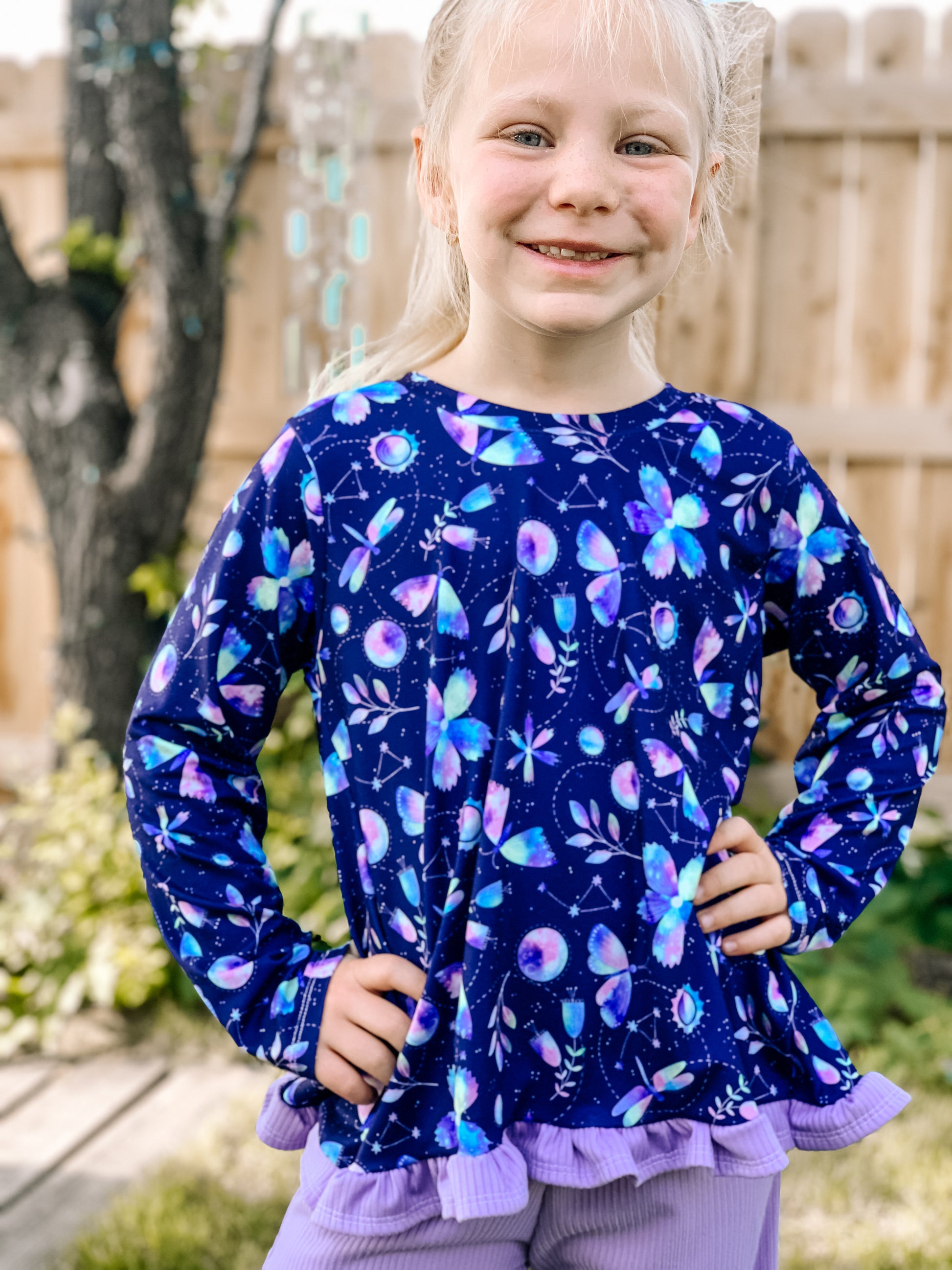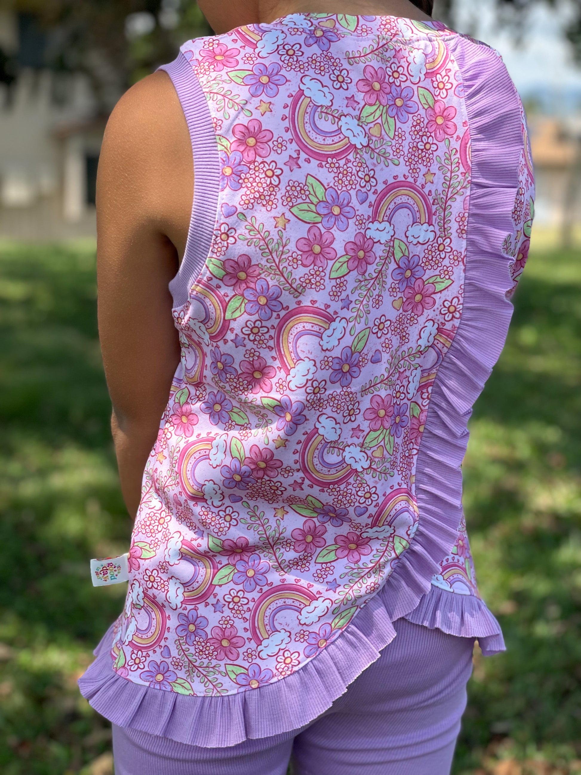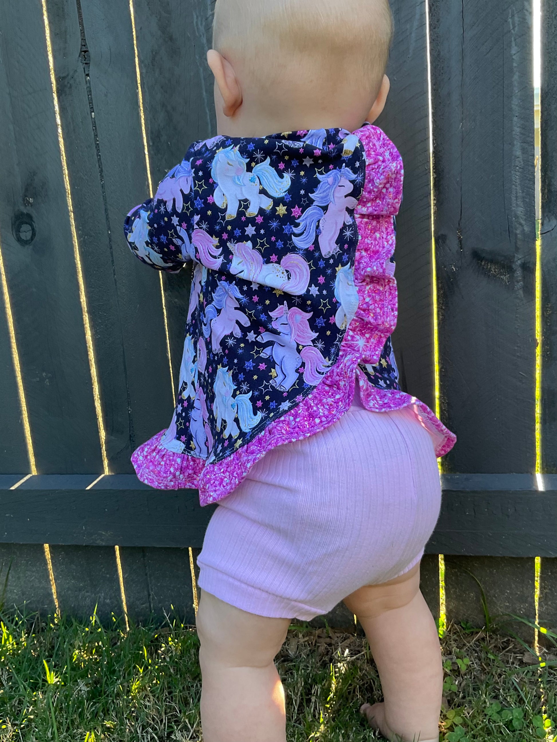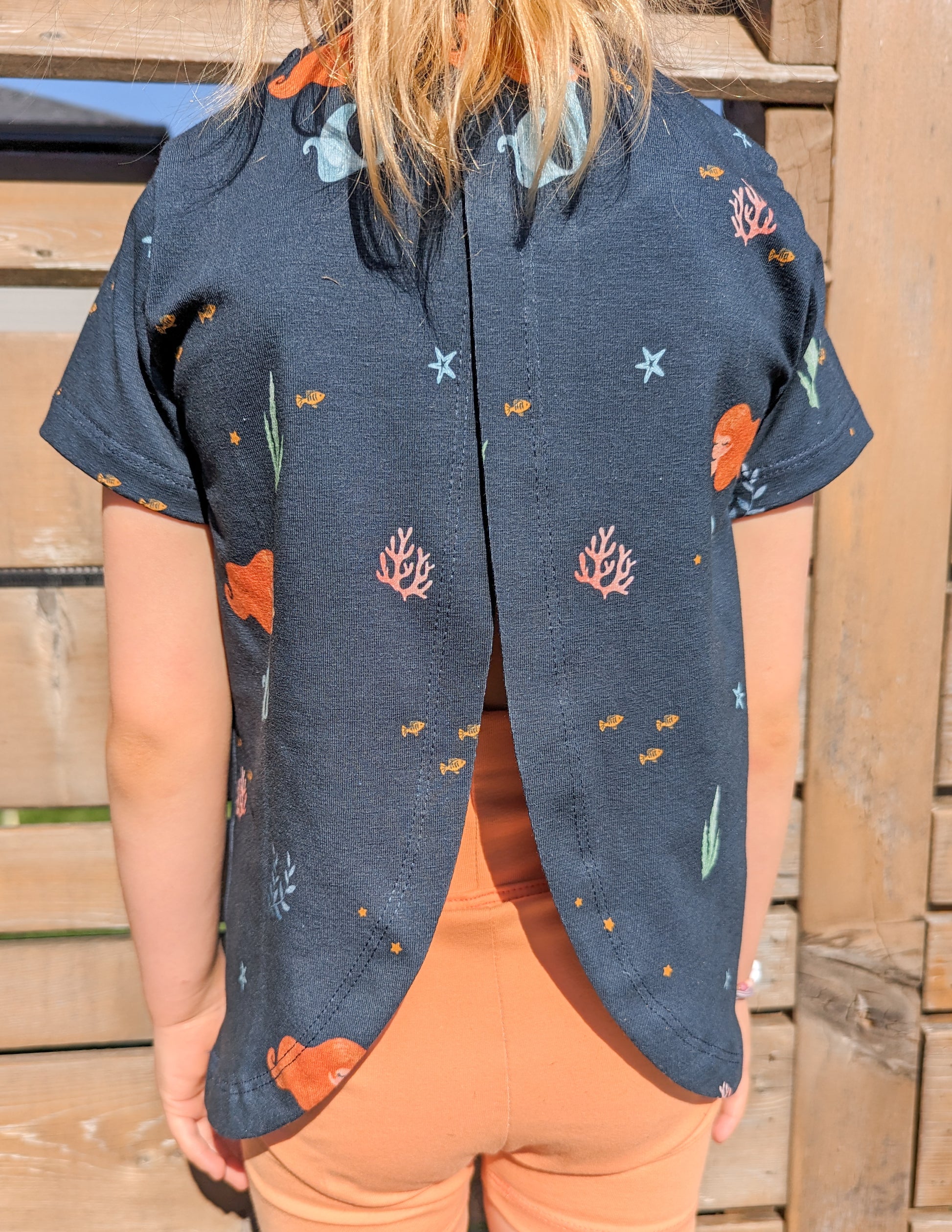 Zoelle is a loose fitting top with four back body finishes- open back, ruffle open back, seam back and ruffle seam back. Zoelle also offers tank, short and long sleeve options to make it all season friendly. Zoelle is a quick sew intended for knit fabrics.